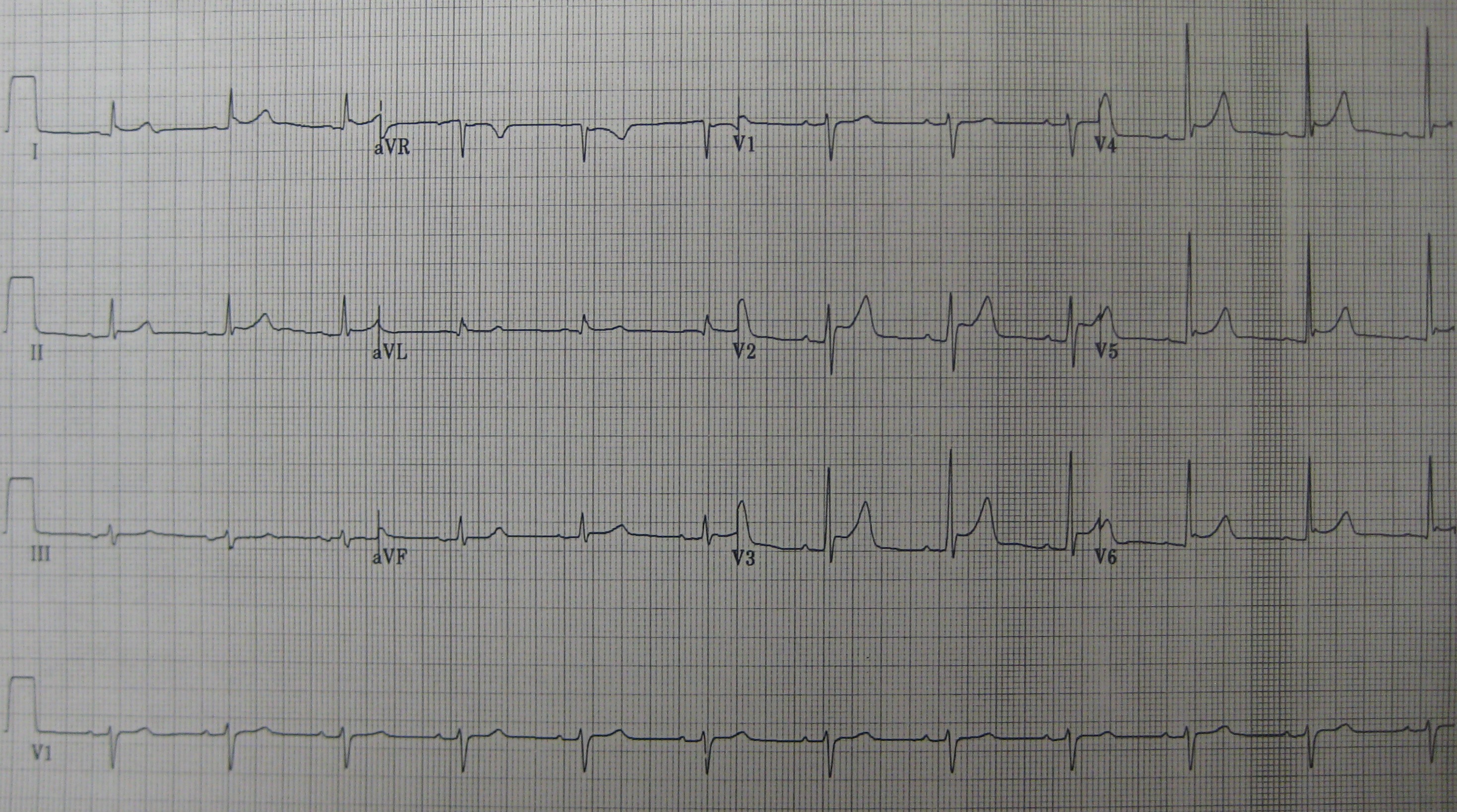 심낭염 진단은 환자의 증상, 신체 검진 소견, 검사 결과를 종합하여 이루어진다. 선호되는 초기 진단 검사는 심전도이며, aVR 및 V1을 제외한 모든 유도에서 광범위하고 오목한 ("안장 모양") ST 분절 상승과 PR 분절 저하를 보일 수 있다.[11] 동성 빈맥과 낮은 전압 QRS 복합체도 관찰될 수 있는데, 이는 무증상 수준의 심낭 삼출이 있는 경우에 나타날 수 있다. PR 저하는 얇은 심방이 심낭의 염증 과정에 의해 심실보다 더 쉽게 영향을 받기 때문에 종종 초기 과정에서 나타난다.