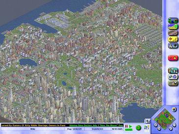 게임 화면 하단에는 뉴스 속보가 흐르는데, 도시 상황에 대한 정보를 뉴스 기사 형태로 보여준다. 예를 들어 도시에 학교가 더 필요하다는 내용이나 특정 도시 부서의 기능 수준을 알려주는 식이다.일반적으로 도시가 잘 운영될 때는 뉴스 속보에 유머러스하거나 비논리적인 헤드라인이 표시되어 플레이어에게 재미를 더한다. "36년 결혼 생활 후, 남편은 아내가 희귀한 유카 식물의 일종임을 알게 되었다"와 같은 식이다. 때로는 "(도시 이름) 뉴스 속보" 또는 "와이즈 가이 새미의 책상에서"와 같은 헤드라인이 표시되기도 한다.