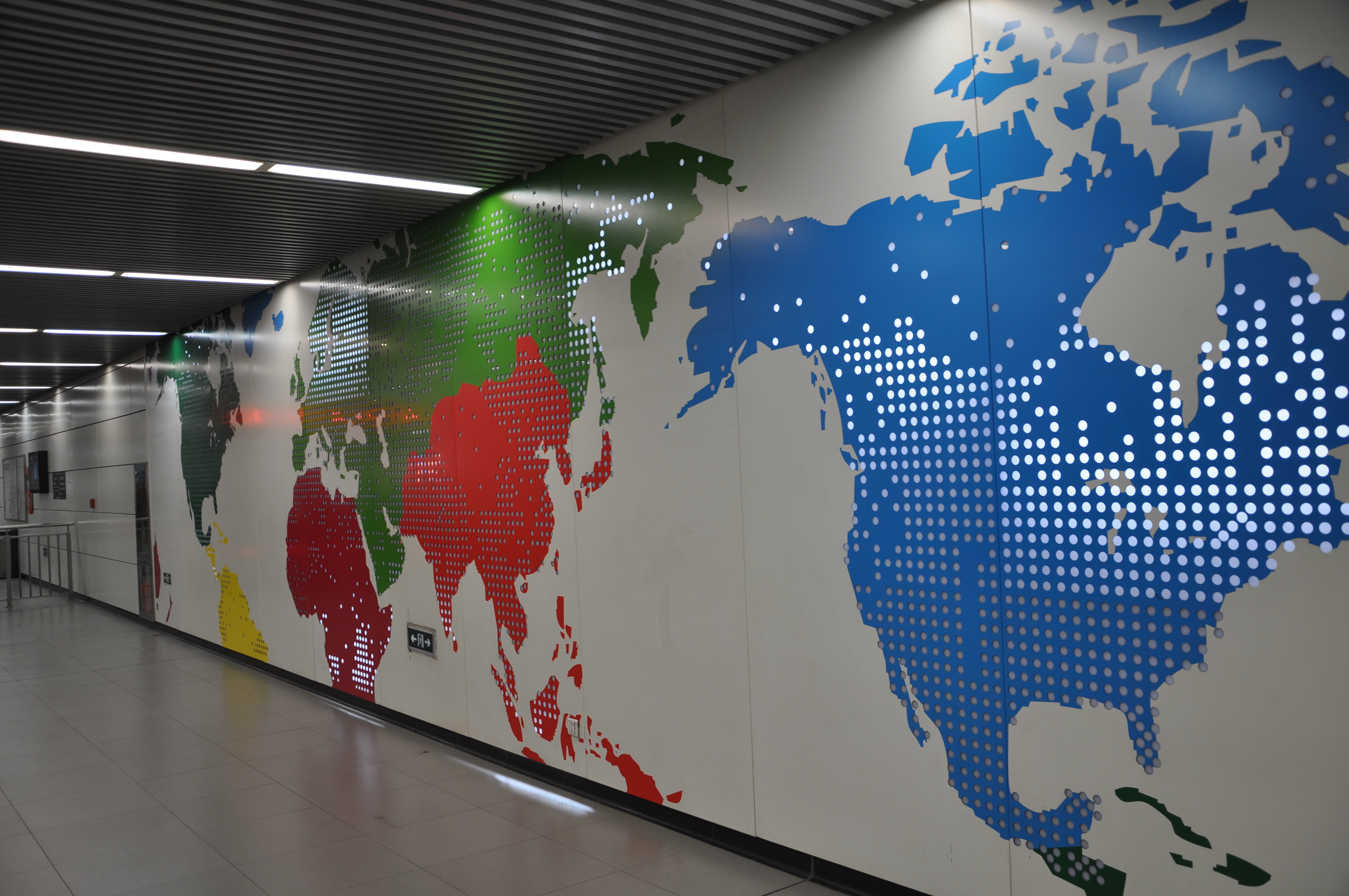 수도공항선 역의 디자인 공간은 비행하는 유선형의 모양을 강조하였으며, 파란색을 주색으로 한다.[14] 10호선 역 대합실을 장식한 세계지도 문양에는 세계 에너지의 분포 상황을 색깔별로 조명해 반영했다.