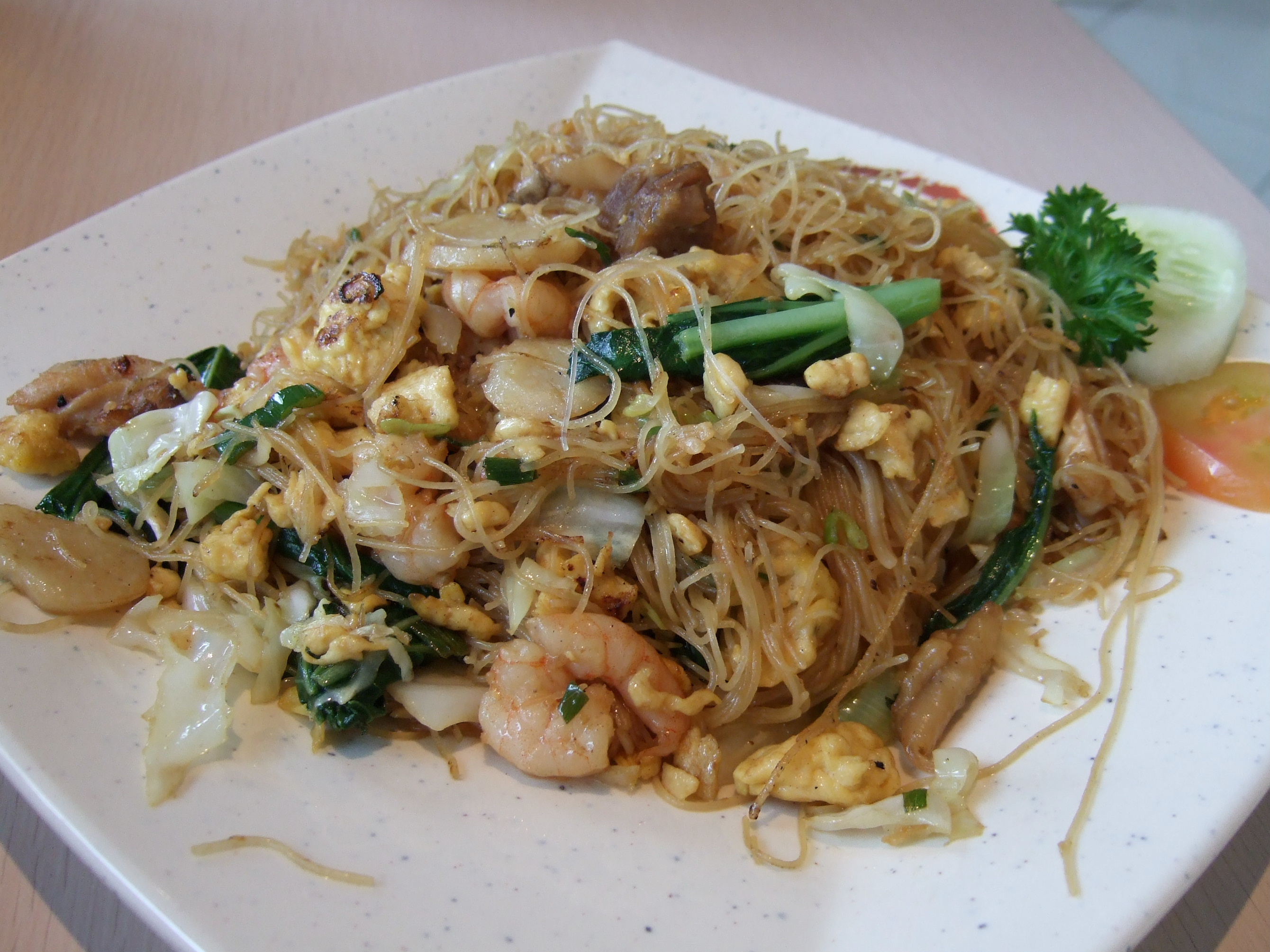 비훈 고렝(Bihun goreng) | 중국-인도네시아 요리에서 단맛 간장과 함께 볶은 쌀 버미셀리이다. |