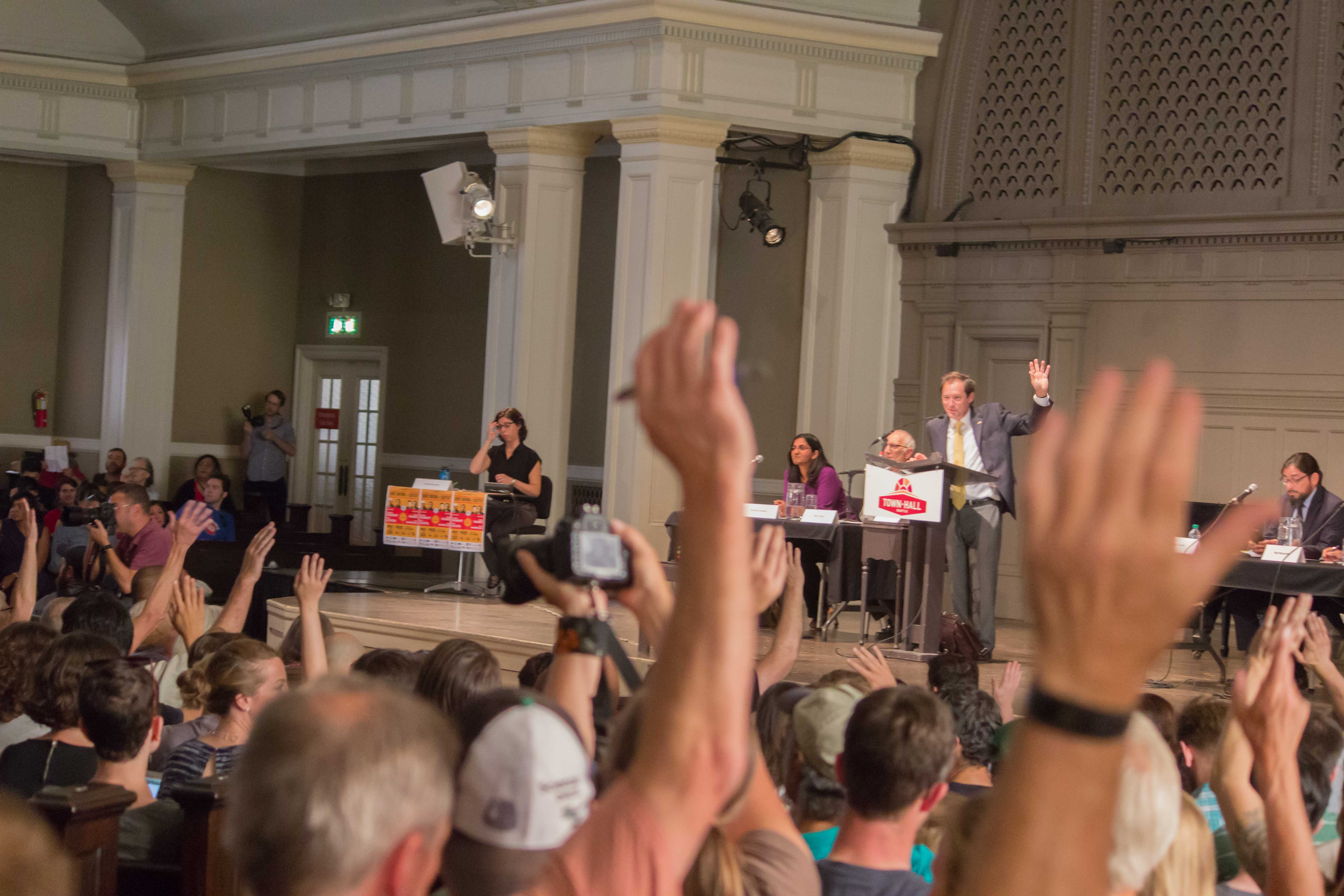 가장 느슨한 접근 구조인 무제한/민주적 접근은 모든 문제, 해결책, 사람이 참여할 수 있도록 한다. 모든 활성 문제는 모든 활성 선택에 접근할 수 있다.[2] 이는 더 많은 에너지를 생성하지만, 문제, 해결책, 참여자가 서로 간섭하는 것을 허용한다. 갈등과 문제 해결에 할애되는 시간(무정부 상태)이 증가한다.[1] 예를 들어 공개 토론장, 타운 홀 또는 전체 회의가 있을 수 있다.