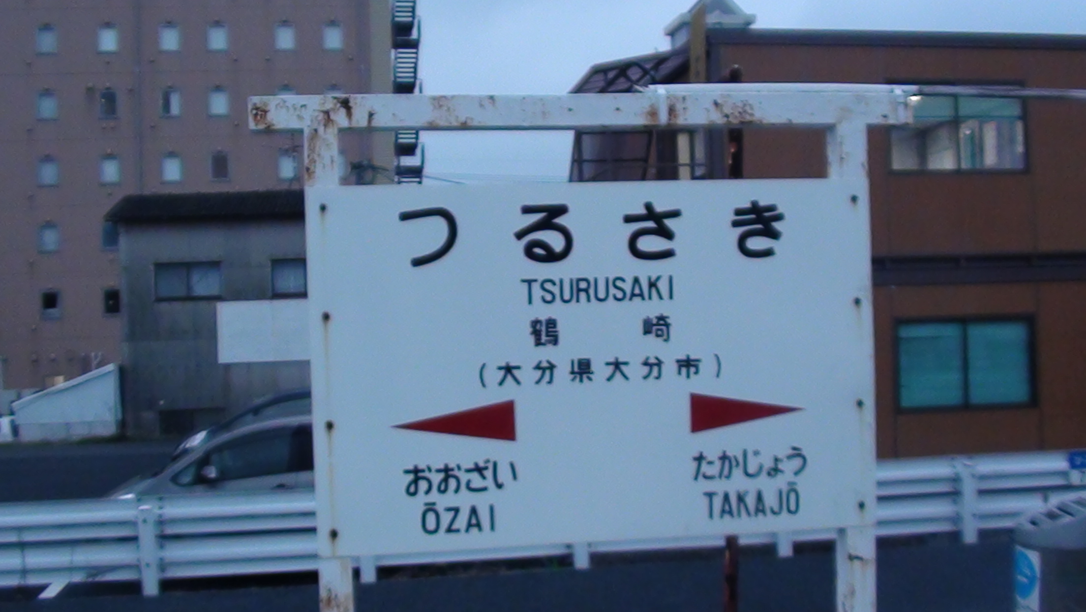 쓰루사키역은 1914년 4월 1일에 개업한 일본국유철도 닛포 본선의 역이다. 1945년의 쓰루사키 공습으로 역사가 소실되었고, 1960년부터 급행 '휴가'가 정차하면서 우등열차 정차역이 되었다. 섬식 승강장 1면 2선을 갖춘 지상역으로, 모든 특급 열차가 정차하며, 역무는 업무위탁으로 운영된다. 주변에는 관공서, 상업 시설, 공업 지대가 위치해 있으며, 오이타 버스 노선이 운행된다.