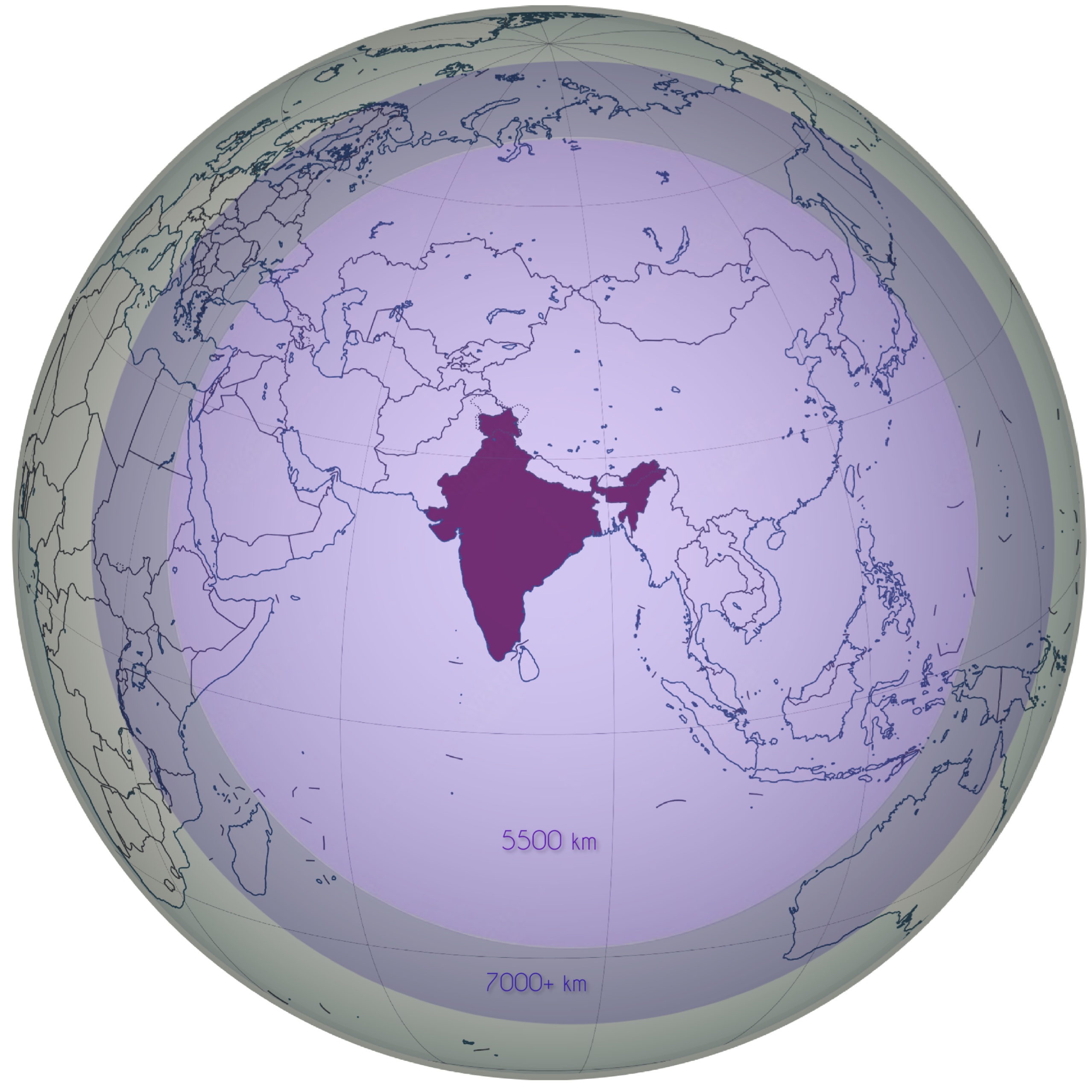 아그니-5가 실전 배치되면 인도는 미국, 러시아, 영국, 프랑스, 중국에 이어 6번째 ICBM 보유국 지위를 확보하게 된다.[132] 중국, 러시아, 유럽 대부분의 지역을 타격 가능하나, 미국은 불가능하다. 인도는 1974년과 1998년 핵실험에 성공하면서 사실상 핵무기 보유국으로 국제사회에서 인정받고 있다.