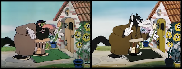 - 1936년에는 ''늑대와 양치기 소년''을 기반으로 한 ''아기 늑대 삼형제''가 제작되었다. 이 작품에는 큰 늑대의 세 아들이 등장하여 아빠처럼 돼지들을 잡아먹고 싶어했다.[22]