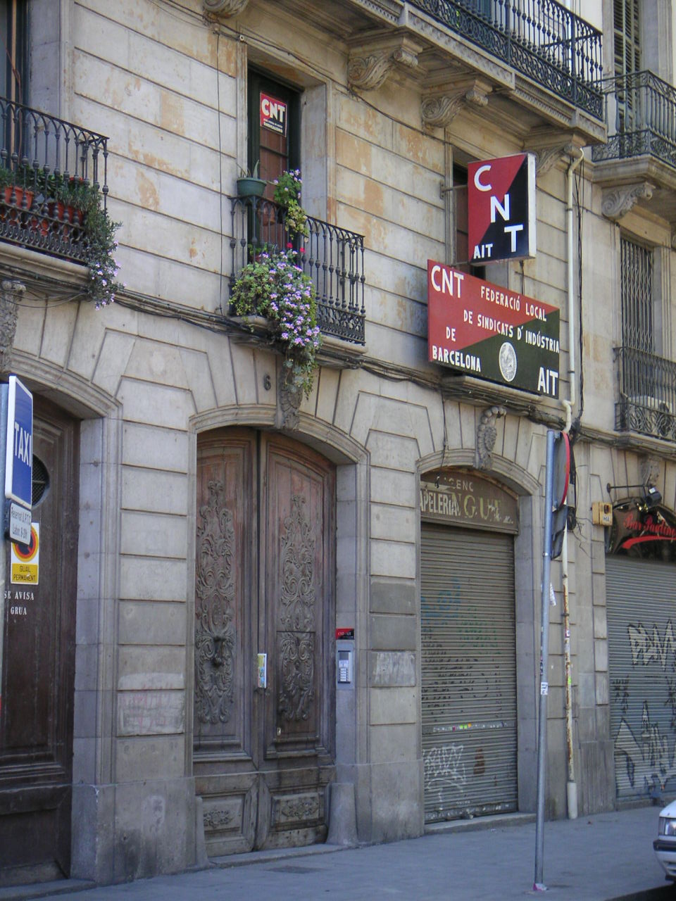 - 스페인: 1910년 카탈루냐의 노동조합 'Solidaridad Obrera'(노동자 연대) 대회를 통해 전국노동자연합(Confederación Nacional del Trabajo, CNT)이 창립되었다. 이는 당시 주류 노동조합인 노동자 총동맹(Unión General de Trabajadores, UGT)에 대항하고, "부르주아지의 혁명적 몰수를 통해 노동계급의 경제적 해방을 가속화"하는 것을 목표로 했다. 초기에는 26,571명의 회원으로 시작했으나,[6] 1911년 첫 총회와 함께 총파업을 일으켜 바르셀로나 판사에 의해 1914년까지 불법화되기도 했다.[6] 1918년부터 세력을 키워 1919년에는 회원 수가 70만 명에 달했으며, 카탈루냐 산업의 70%를 마비시킨 'La Canadiense' 총파업에서 핵심적인 역할을 수행했다.[7] 이 시기 고용주들은 활동적인 노조원을 위협하기 위해 폭력배를 고용하는 행위인 '피스톨레리즘'(pistolerismo)이 자행되어 많은 노조 간부들이 희생되는 폭력 사태를 유발했다.[8]