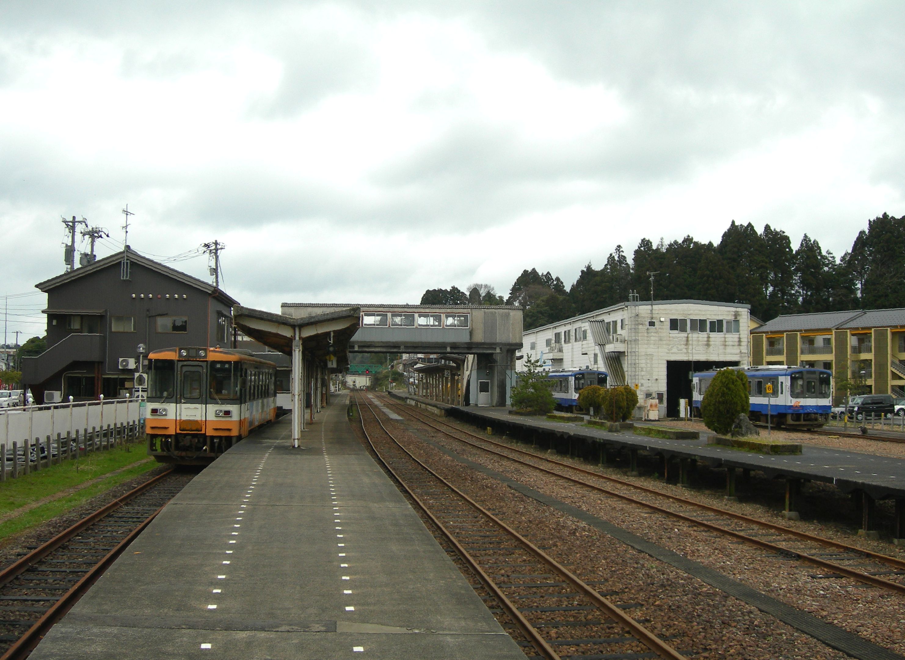 역 구내에는 차량 기지와 공장을 갖추고 있으며, 야간 주박도 설정되어 있다. 이 차량 기지는 1991년 나나오선의 경영 이관 시에 설치되었다.