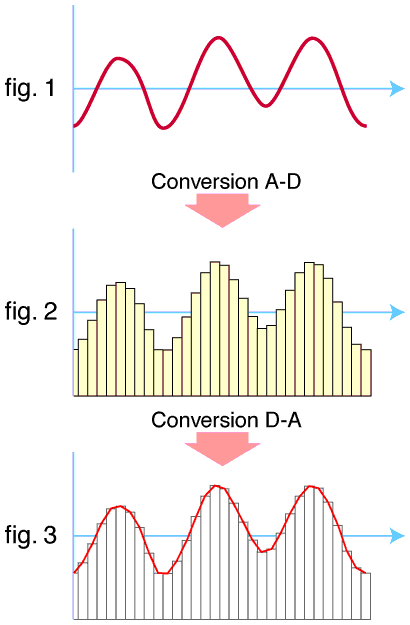 연속적으로 변화하는 대역 제한 신호는 표본 추출될 수 있으며, 이후 원본 신호는 재구성 필터를 통해 이산 시간 값으로부터 재생산될 수 있다. 나이키스트-섀넌 샘플링 정리에 따르면, 원본 신호의 충실한 재현은 표본 추출률이 신호의 최고 주파수의 두 배보다 높을 경우에만 가능하다.[7]
