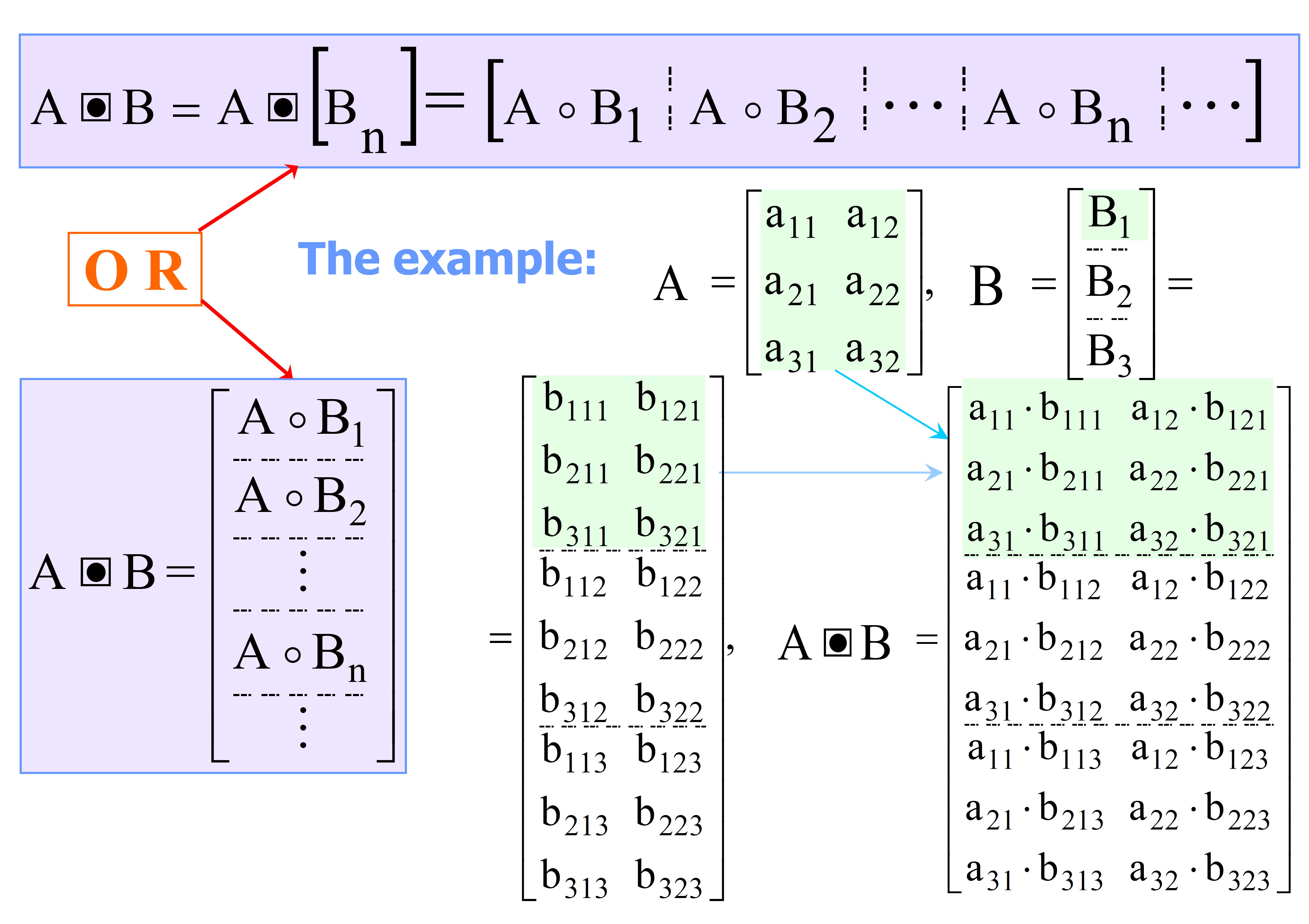 - 만약 가 열별 카트리-라오 곱이라면, 다음이 성립한다.