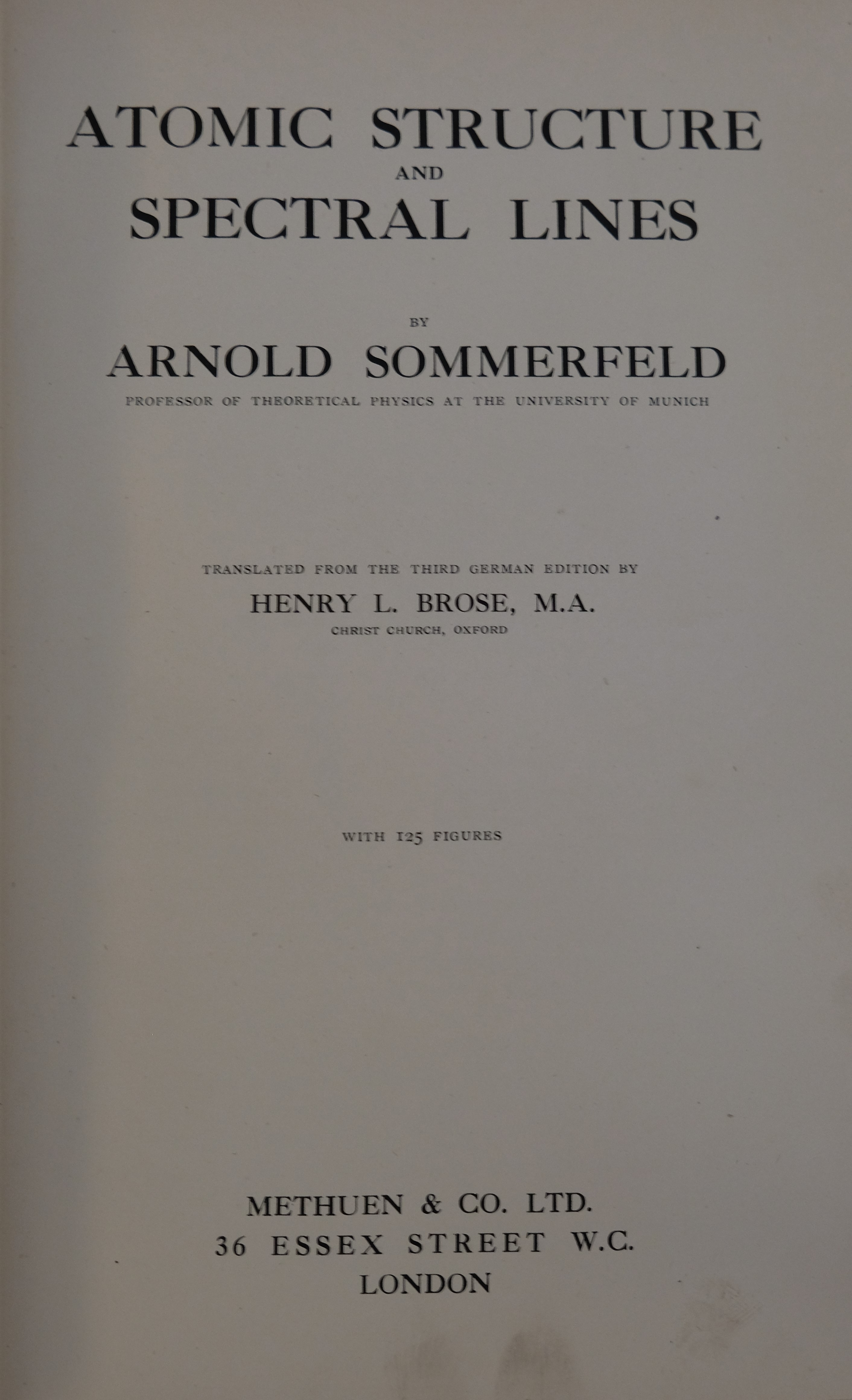 * Atomic Structure and Spectral Lines영어, 아르놀트 조머펠트, 헨리 L. 브로스가 번역한 독일어 3판 번역본 (Methuen, 1923)