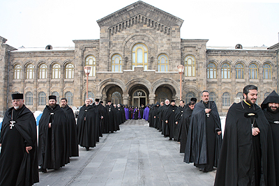 아르메니아 사도교회아르메니아인들의 국민교회이다.[33] 오리엔트 정교회의 일부인 아르메니아 사도교회는 가장 오래된 기독교 종파 중 하나이며,[33] '아르메니아 민족 정체성의 보호자'로 많은 이들에게 여겨진다.[34] "종교 기관으로서 그 역할을 넘어, 아르메니아 사도교회는 신의 특별한 선택을 받은 이들이라는 아르메니아 국민 정체성의 발전에 있어 기초적인 핵심으로 전통적으로 여겨진다."[35]