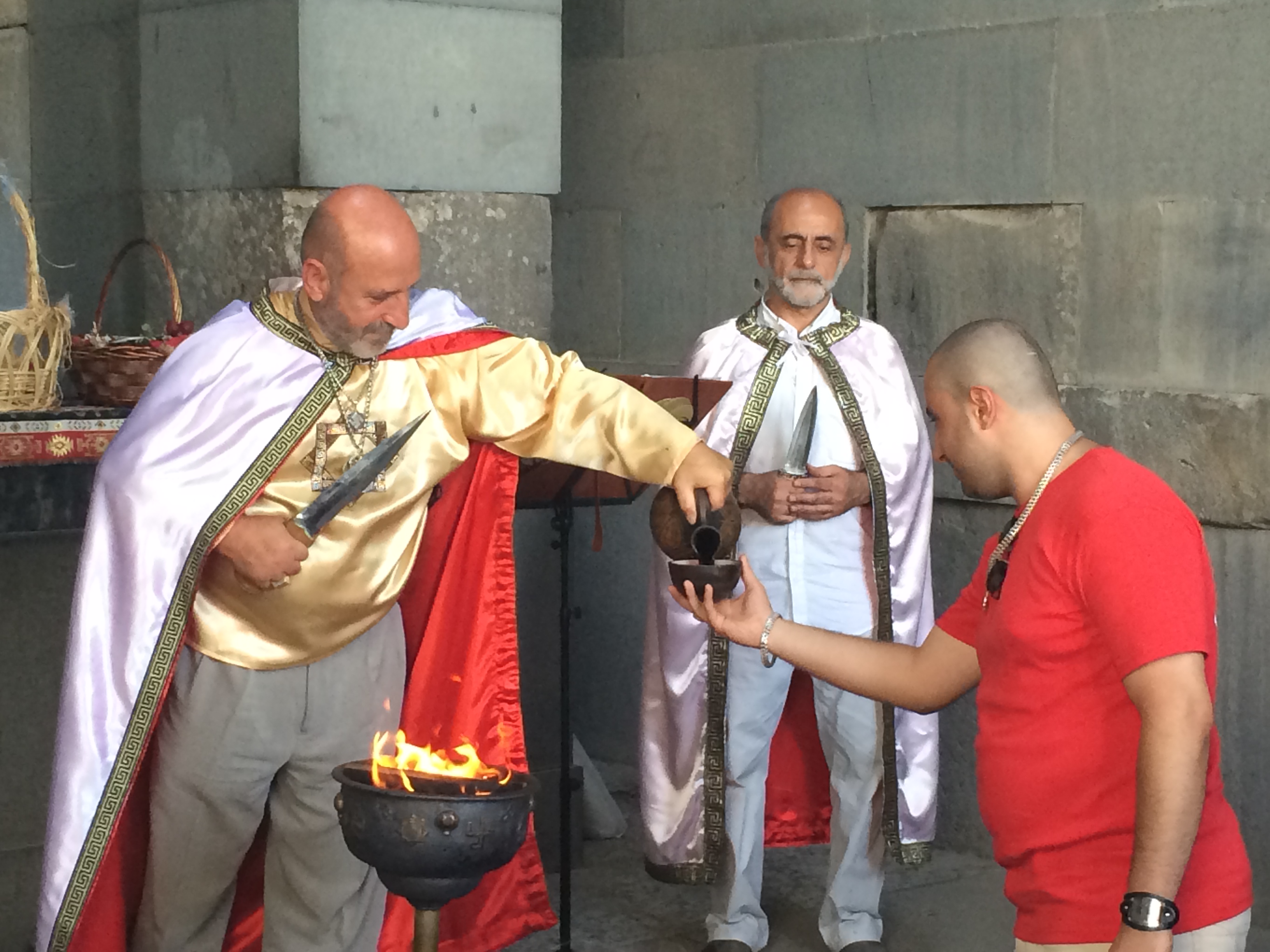 헤탄 사제가 가르니 사원에서 의식을 집행하고 있다.