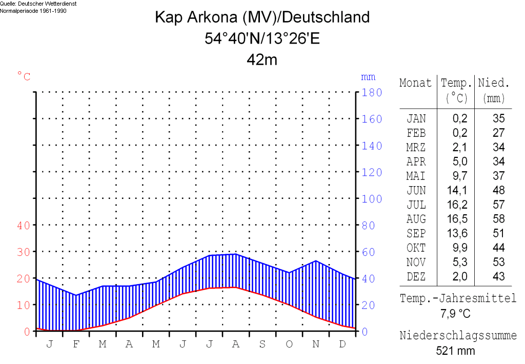 Klimatafel von Arkona / Rügen, Mecklenburg-Vorpommern / Deutschland