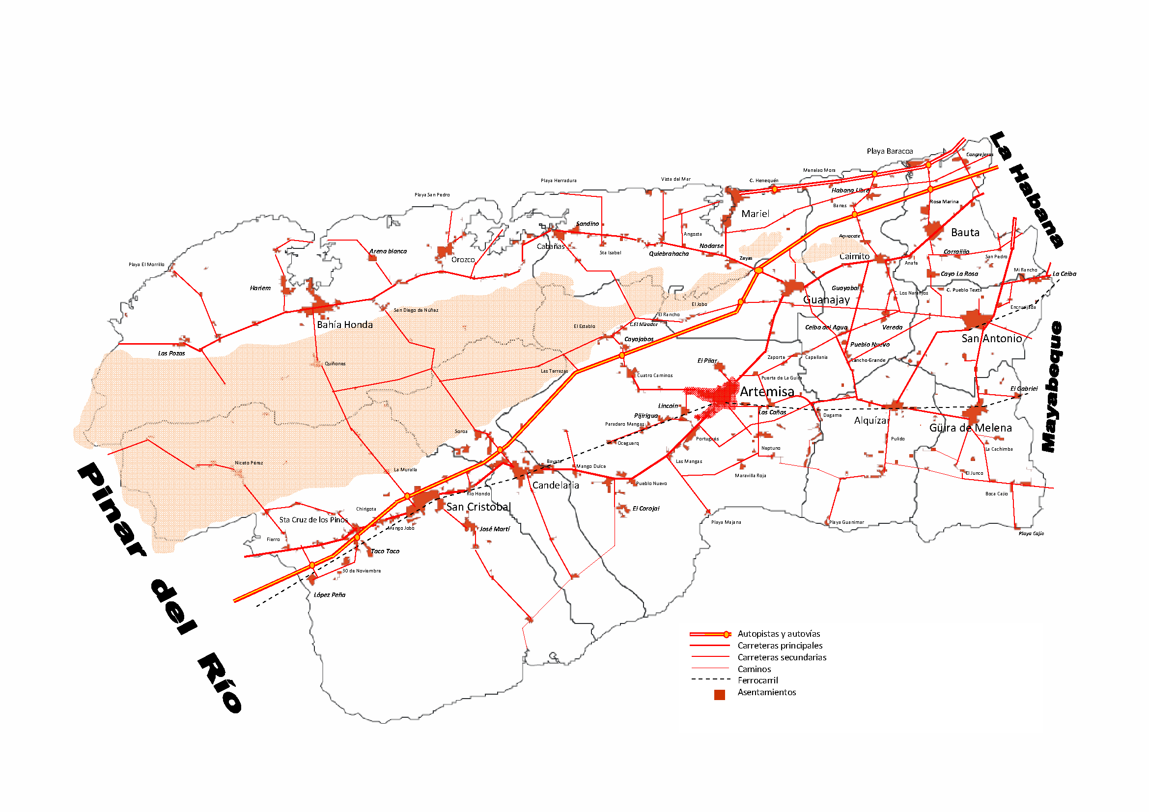 북쪽과 남쪽은 바다에 접해 있으며, 서쪽은 피나르델리오 주, 동쪽은 라아바나 주, 마야베케 주와 접하고 있다.3. 행정 구역
