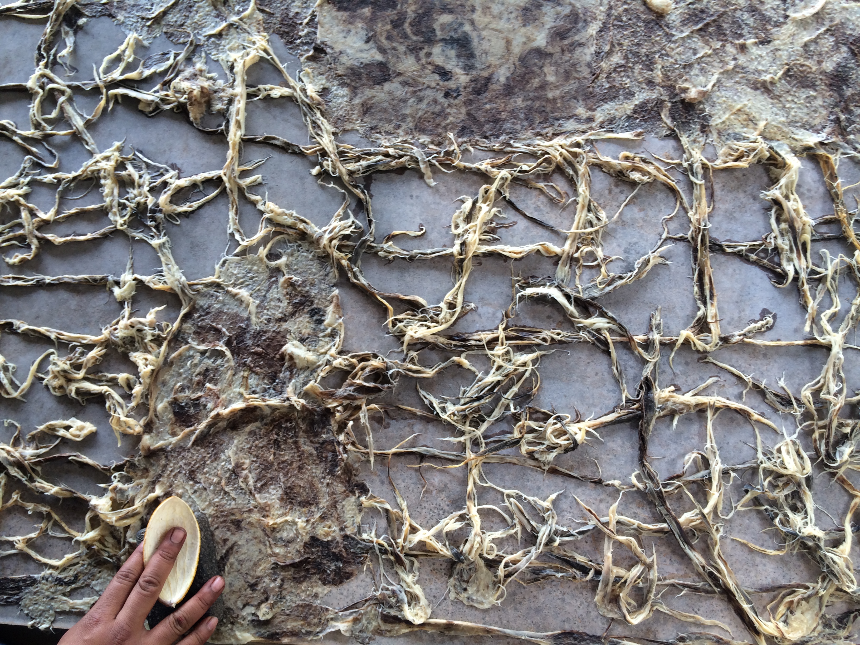 판에 남아 있는 두드린 종이는 밖으로 가져가 건조시킨다. 건조 시간은 기상 조건에 따라 다르다. 건조하고 맑은 날에는 1~2시간이 걸릴 수 있지만, 습한 조건에서는 며칠이 걸릴 수 있다.[72]