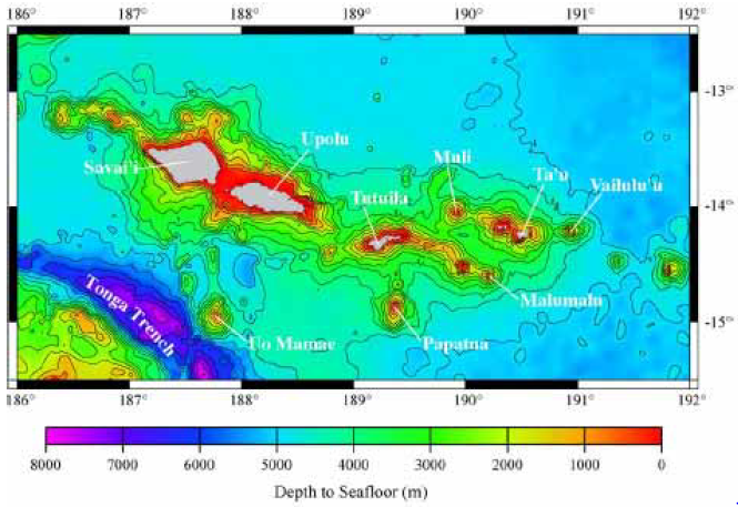 사모아 섬은 수년 동안 화산 활동의 증거를 보이지 않았지만, 섬 아래의 사모아 열점은 활동의 징후를 계속 보여주고 있으며, 1973년에는 아메리칸사모아 동쪽에서 해저 화산 폭발이 감지되었다.[24]