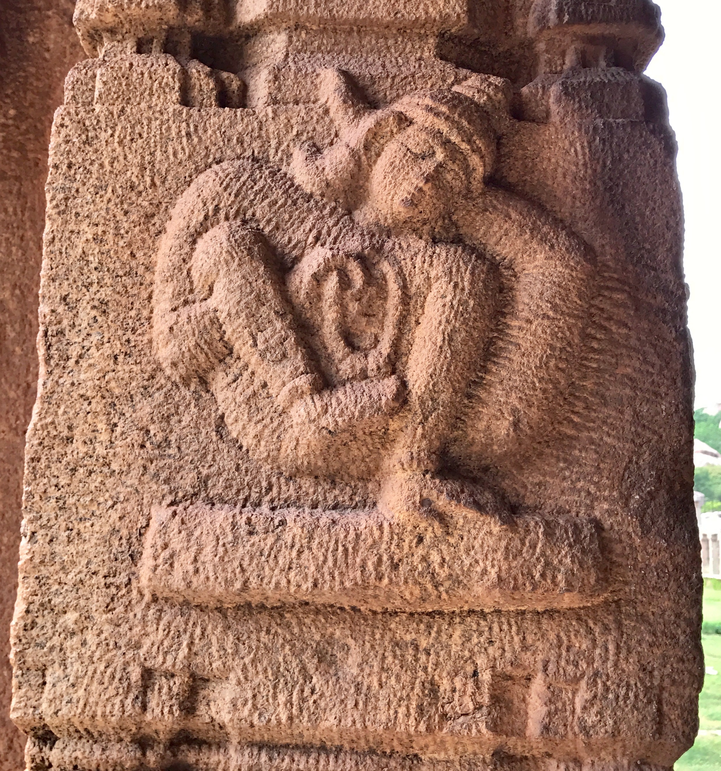 함피의 16세기 아츄타라야 사원 기둥에는 막대 위에 균형을 잡은 싯다사나, 차크라사나, 스트랩을 사용한 요가파타사나, 막대기를 사용한 아도 무카 브릭샤사나 등 요가 수행자들의 다양한 부조상이 있으며, 여러 미확인 자세도 있다.[22]