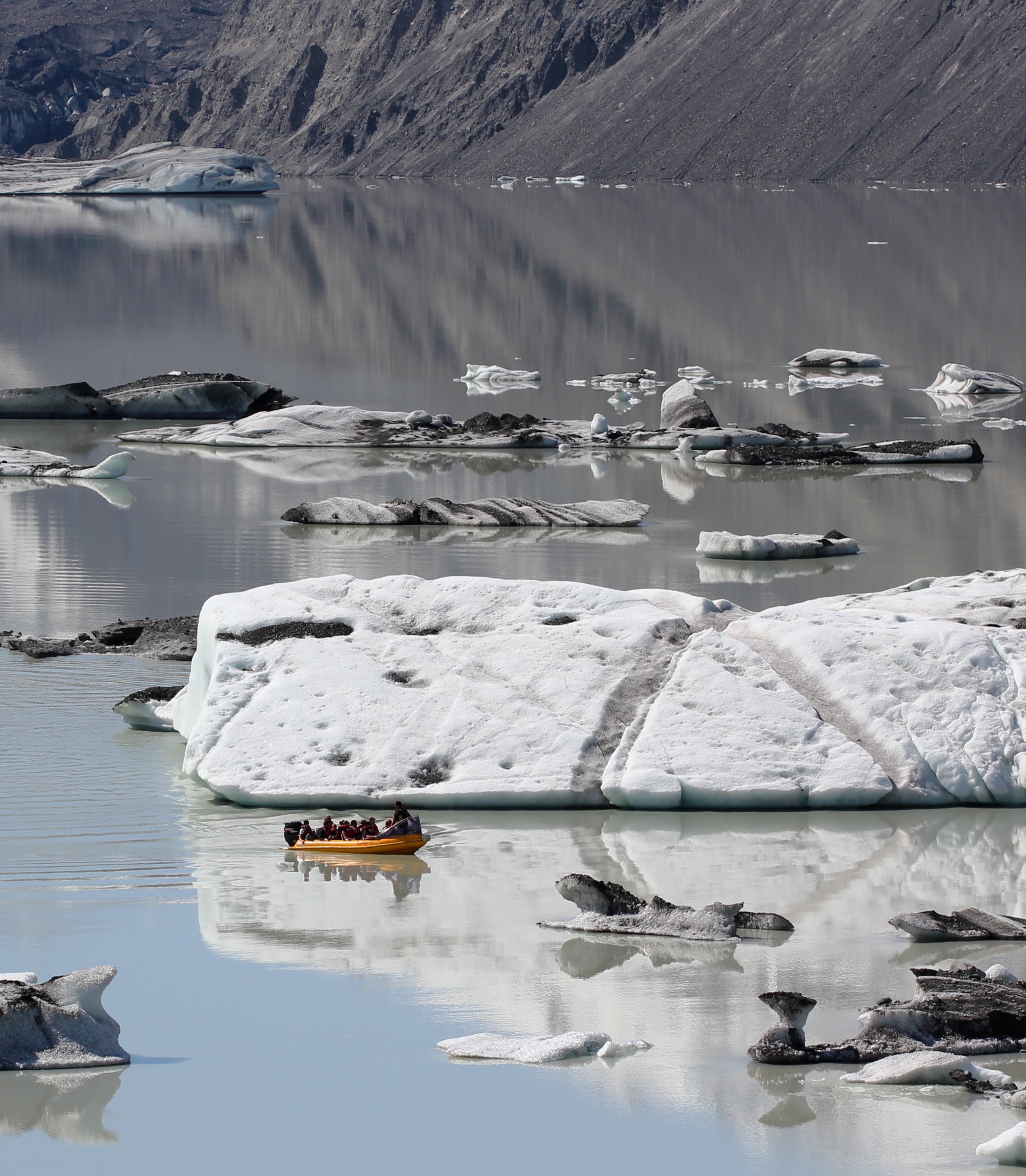 빙퇴호 중 공식 명칭을 가진 것은 타스만 호와 후커 호 두 곳뿐이며, 이 호수들은 도보 트레일을 통해 비교적 쉽게 접근할 수 있다. 타스만 호는 형성된 빙퇴호 중 가장 크며, 호수 위 빙산 사이를 배로 여행하는 것은 인기 있는 관광 활동이다.[41][42]