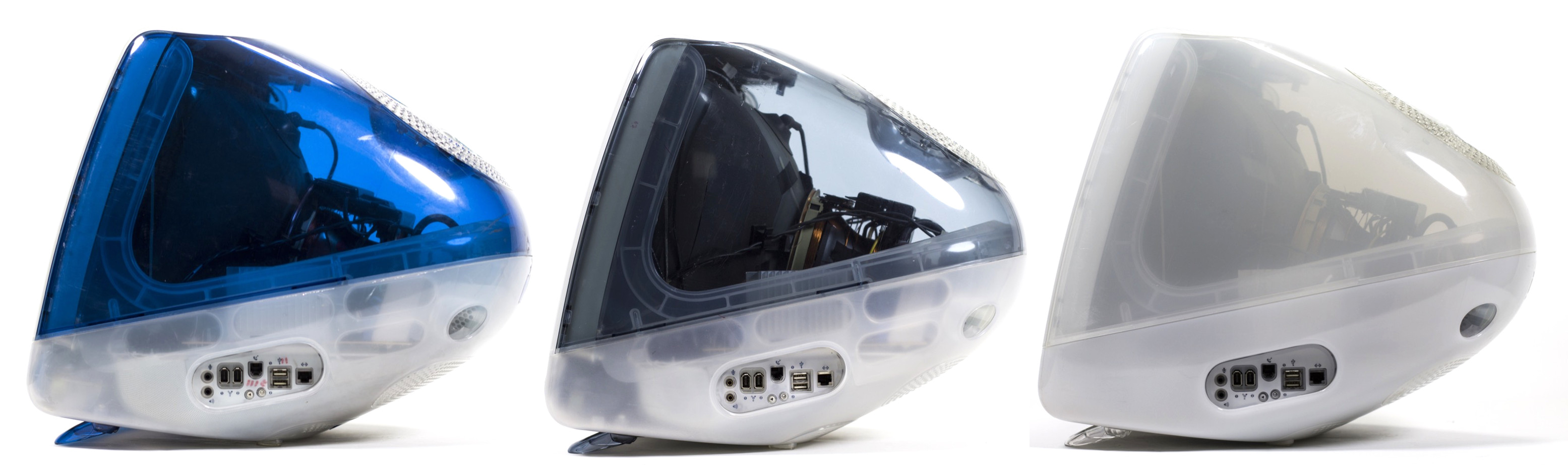 iMac은 최초 출시 이후 지속적으로 업그레이드되었다. 본래 측면이 파란색 계열의 반투명 플라스틱이었는데, 이후 이 반투명 플라스틱의 색상을 더 늘렸다.