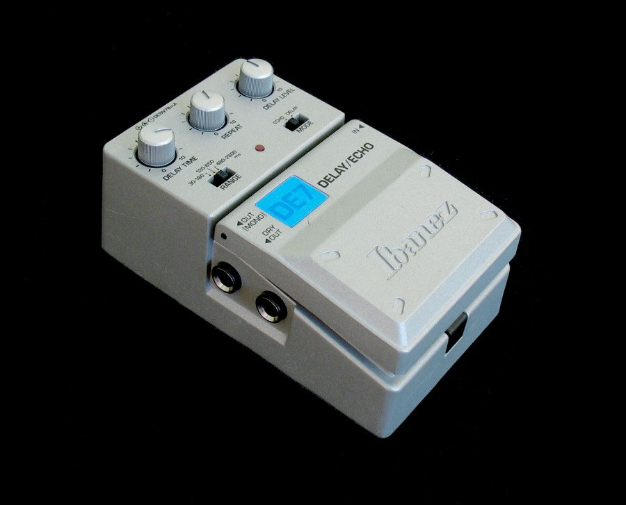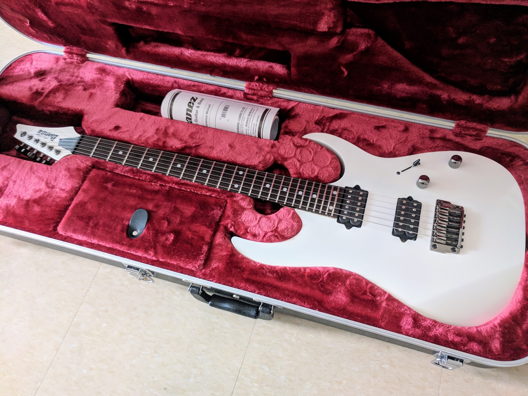 Ibanez영어는 1980년대의 헤비 메탈 붐 속에서 1987년 스티브 바이의 시그니처 모델 '''JEM'''을 발표하고, 이와 비슷한 디자인의 '''RG'''를 출시하여 브랜드의 대표 모델로 자리매김했다.[39] 이후 조 새트리아니, 폴 길버트 등과 엔도스먼트 계약을 맺으며 인기를 얻었고, 오프스프링, 페니와이즈 등 멜로코어 밴드들도 사용했다.1989년에는 스티브 바이와 함께 개발한 세계 최초의 양산 7현 기타 '''Universe'''를 발표했다.[39] 처음에는 존 페트루치와 같은 테크니컬 기타리스트들이 주로 사용했지만, 1990년대 중반 이후 헤비 록(뉴 메탈) 밴드 콘의 헤드와 멍키가 7현 기타로 헤비한 리프를 연주하면서 대중화되었다. 2001년에는 헤드와 멍키의 7현 시그니처 모델 '''K7'''이 출시되었다.