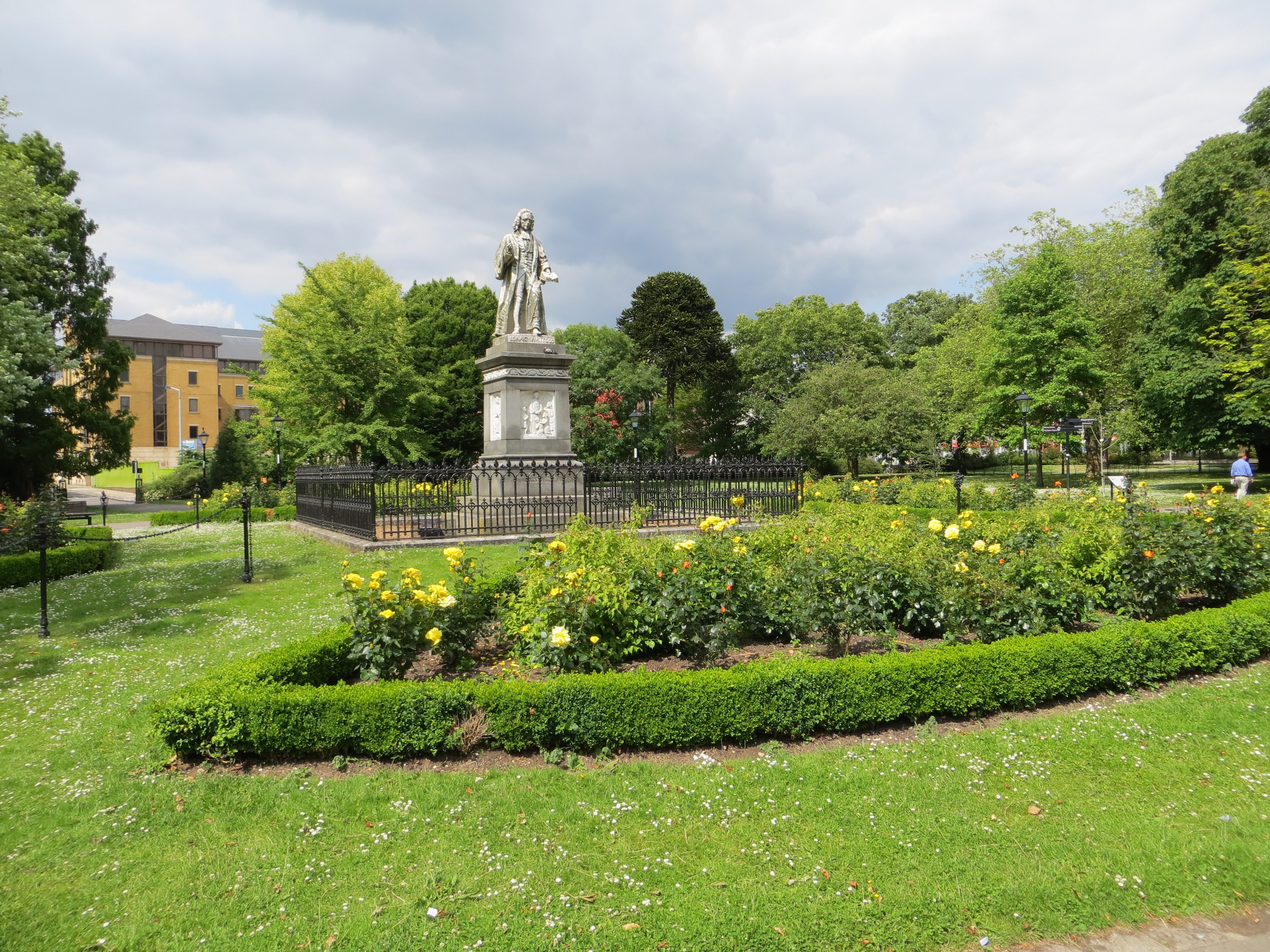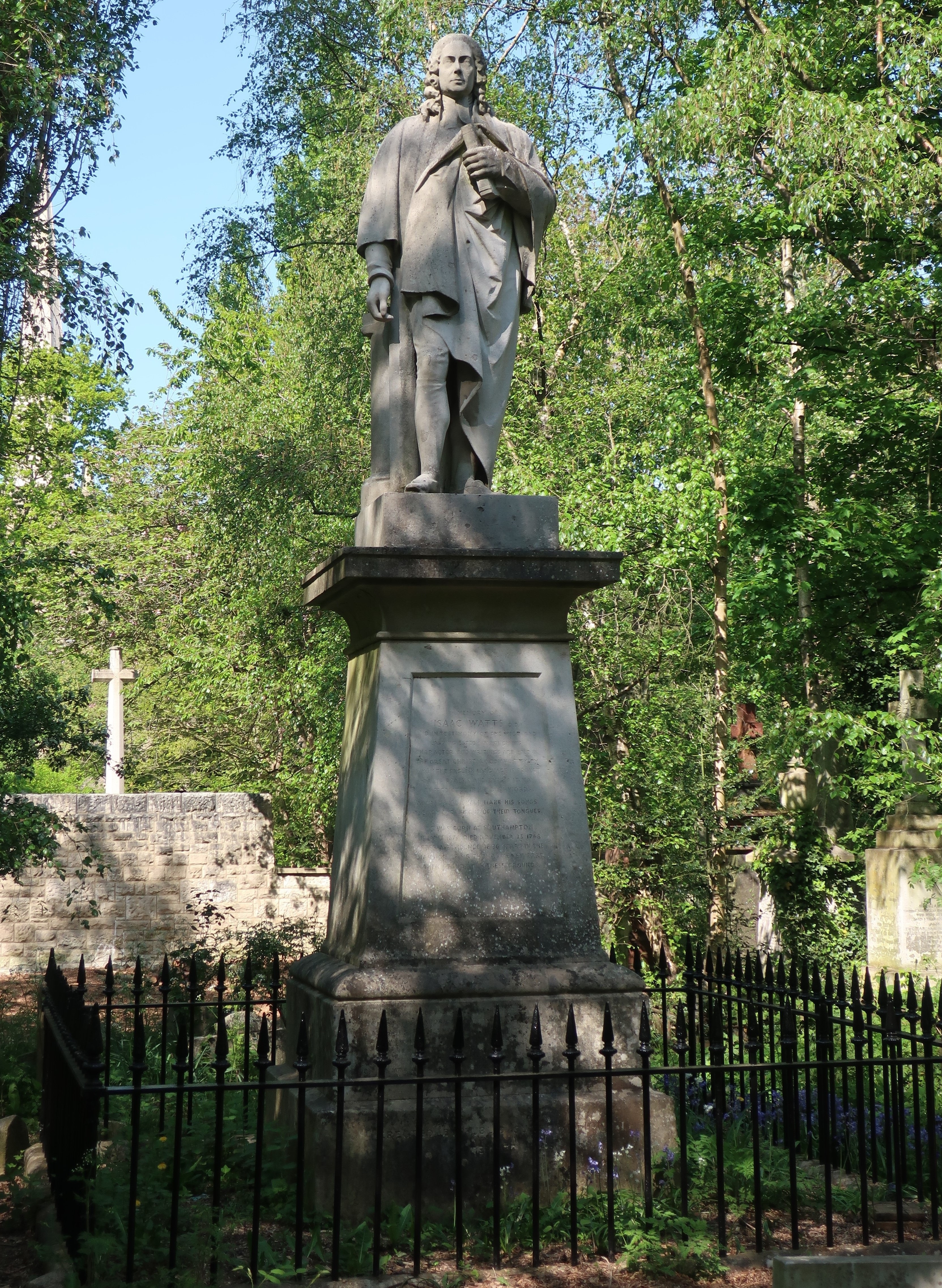 최초의 공공 조각상은 애브니 공원에 세워졌다. 왓츠는 30년 이상 영지에 거주했고, 그곳에서 사망했다. 이 공원은 1840년에 애브니 공원 묘지로 개장되었고, 왓츠의 조각상은 1845년에 시민들의 기부금으로 세워졌다. 애브니 공원 예배당 앞, 왓츠 산책로(Dr Watts' Walk)에 위치하며, 영국의 저명한 조각가인 에드워드 호지스 베일리가 디자인했다. 이 장소에 기념 조각상을 세우는 계획은 1830년대 후반에 조지 콜리슨에 의해 추진되었으며, 그는 1840년 유럽과 미국, 특히 애브니 공원의 묘지 디자인에 관한 그의 책의 프런티스피스로 판화를 출판했다. 콜리슨의 제안은 채택되지 않았고, 대신 베일리의 디자인이 채택되었다.