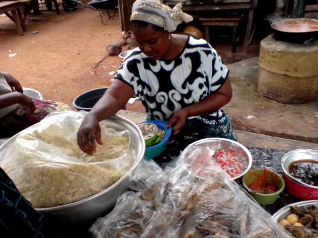 시장에서 판매되는 아체케는 보통 미리 조리되어 있다.