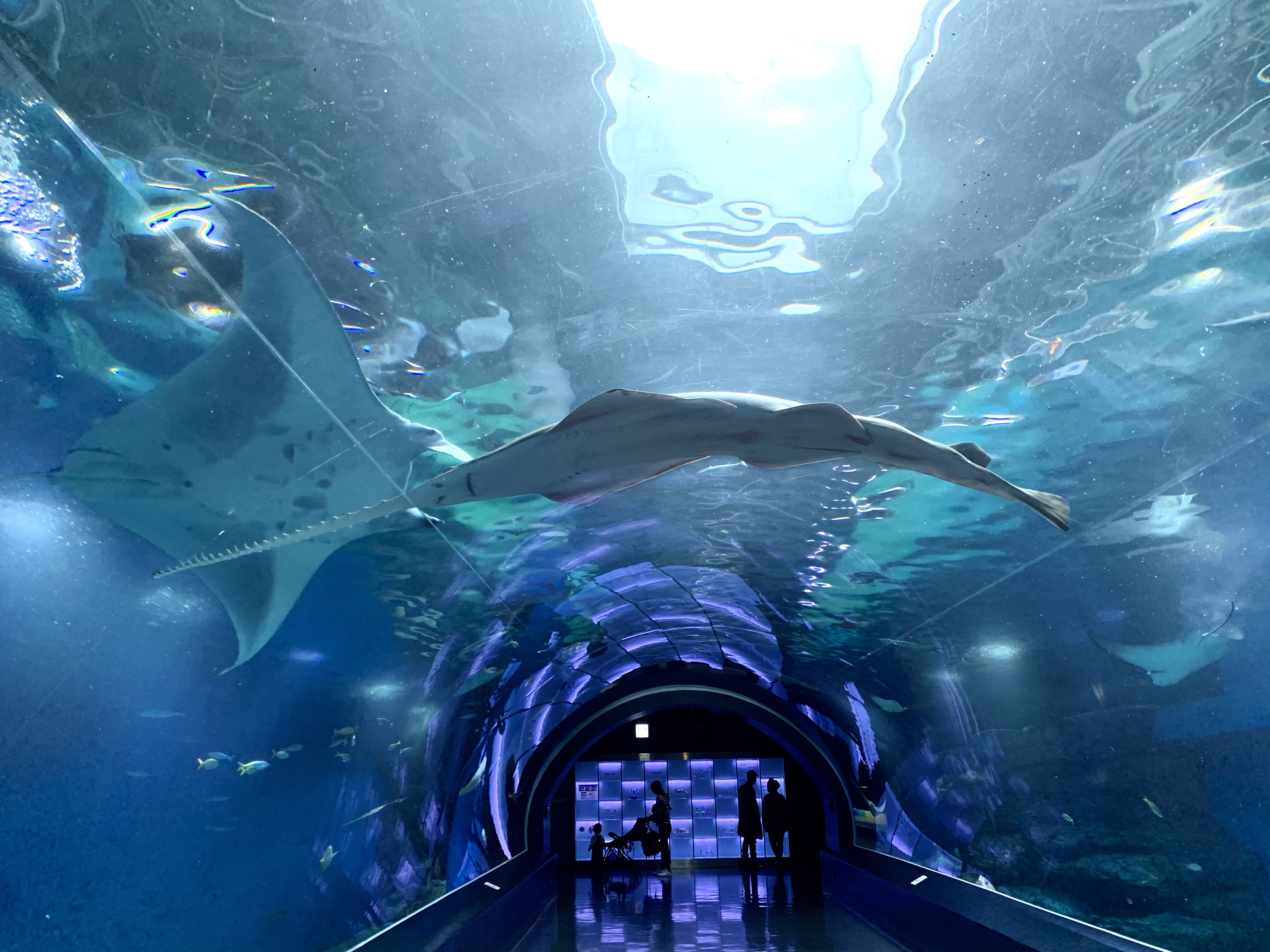 원더 튜브에서는 만타가오리를 비롯한 10종 이상의 가오리가 사육되고 있다. 이 수조 내에서 사육되고 있는 4마리의 Dwarf sawfish|드워프쏘피쉬영어는 2021년 현재 세계에서 유일하게 사육되고 있다.[20]