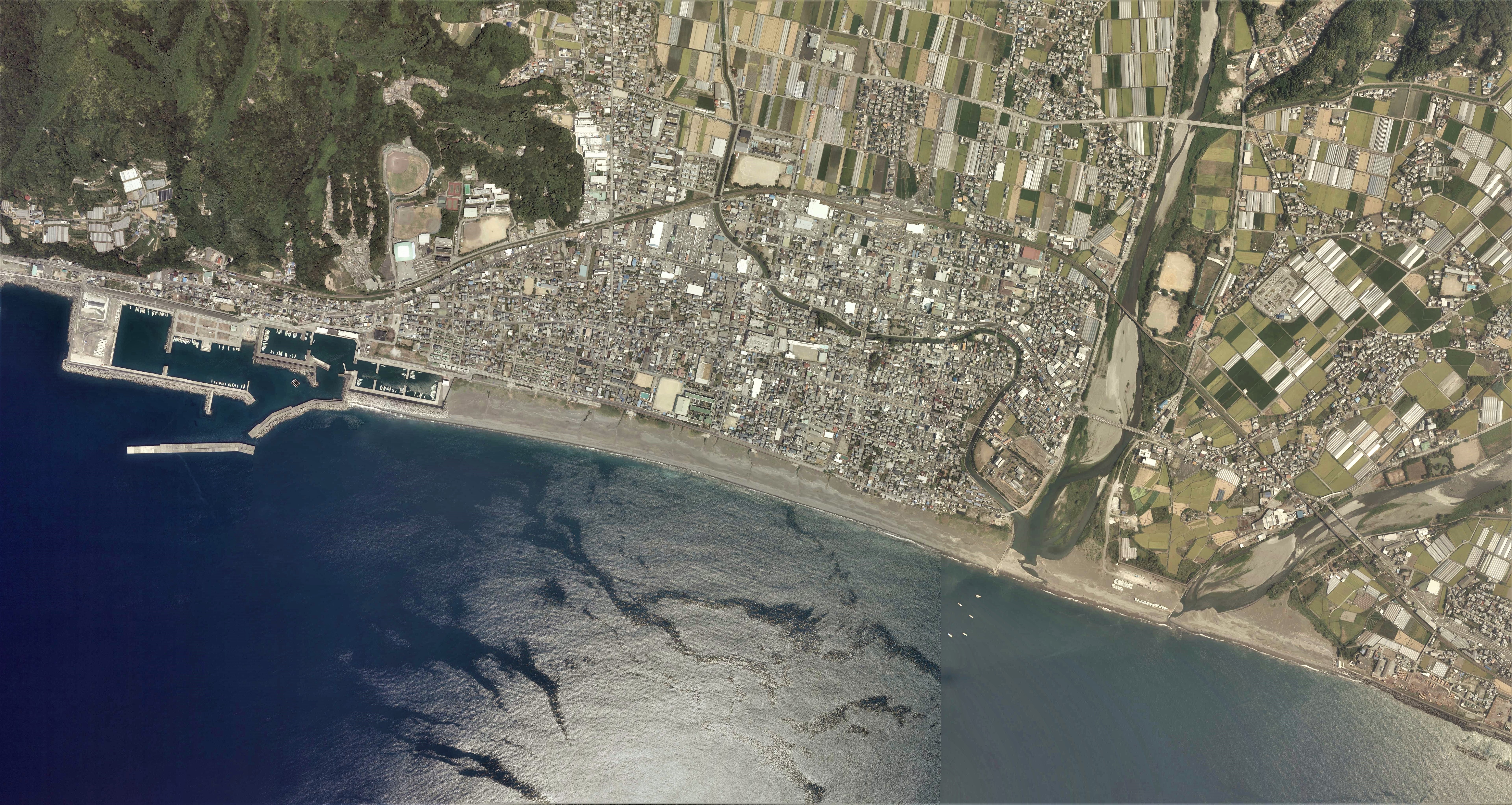 2013년 8월 13일에 촬영한 4장을 합성하여 제작. 국토교통성 국토지리원 [https://mapps.gsi.go.jp/ 지도・항공 사진 열람 서비스]의 항공 사진을 기반으로 제작.