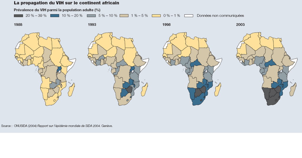 AIDS는 처음에는 남성 동성애자와 약물 중독자들의 질병으로 여겨졌지만, 아프리카에서는 일반 인구 사이에서 확산되었다. 그 결과, HIV와의 싸움에 참여한 사람들은 안전하지 않은 성행위나 약물 주사를 통한 전파를 막는 것의 필요성을 강조하기보다는 모자간 전파 방지, HIV와 빈곤, 성 불평등 등의 관계를 강조하기 시작했다. 이러한 강조점의 변화는 더 많은 자금 지원을 가져왔지만, HIV 발병률의 급격한 증가를 막는 데는 효과적이지 않았다.[25]