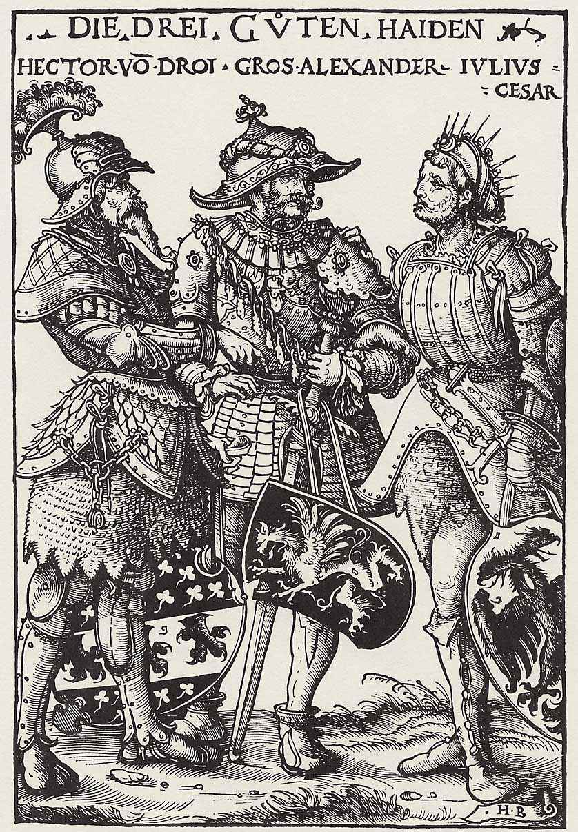 독일 르네상스 시대에 한스 부르크마이어는 "열여덟 위인" 중 세 명을 보여주는 여섯 세트의 목판화를 제작했다. 그는 일반적인 남성 외에도 이교도인 루크레티아, 베투리아, 버지니아, 유대교인 에스더, 유디트, 야엘, 그리고 기독교 성녀인 콘스탄티노폴리스의 헬레나, 스웨덴의 브리짓, 헝가리의 엘리자베스를 그의 판화에 담았다.