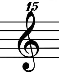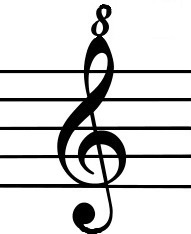 옥타브 음자리표 높은음자리표와 낮은음자리표는 옥타브 숫자로 수정될 수 있다. 음자리표 아래의 "8"(다이어그램과 같이)은 음높이가 수정되지 않은 음자리표보다 한 옥타브 낮게 소리 날 것을 나타낸다. 아래의 "15"는 2 옥타브 이동을 나타낸다. 이 숫자는 음자리표 위에 사용하여 1 옥타브 또는 2 옥타브 높은 음높이를 나타낼 수도 있다. 아래에 팔이 있는 높은음자리표가 가장 일반적인 버전이며, 일반적으로 기타 또는 테너 목소리 음악에 사용된다. 때로는 한 옥타브 위로의 이동이 음자리표를 하나 대신 두 개를 그리는 것으로 표시된다.
