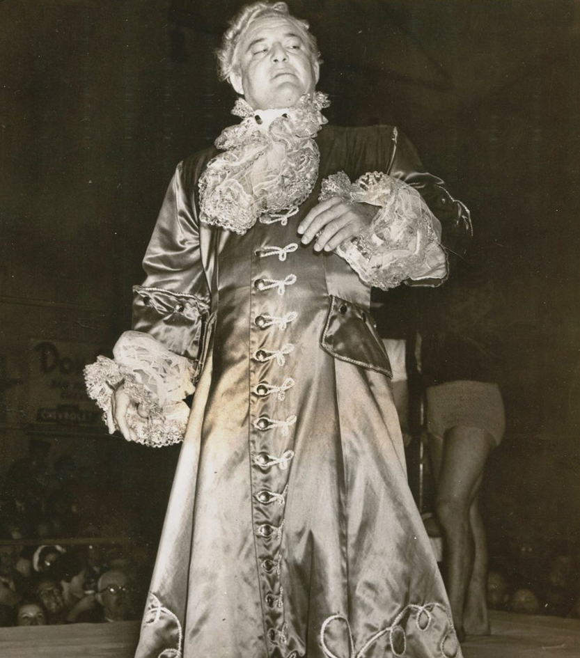 Gorgeous George는 레슬링 및 악역 기믹의 아버지로 여겨진다. 1940년대부터 그는 웨이브진 금발 머리, 화려한 로브와 고급 의상을 입고 아름다운 여성 매니저와 함께 경기장에 등장하는 사치스럽고 화려한 "미남" 기믹을 선보였다. 관중들은 그의 페르소나를 크게 조롱했고, 그가 패배하는 것을 보기 위해 그의 경기에 몰려들었다.[10]