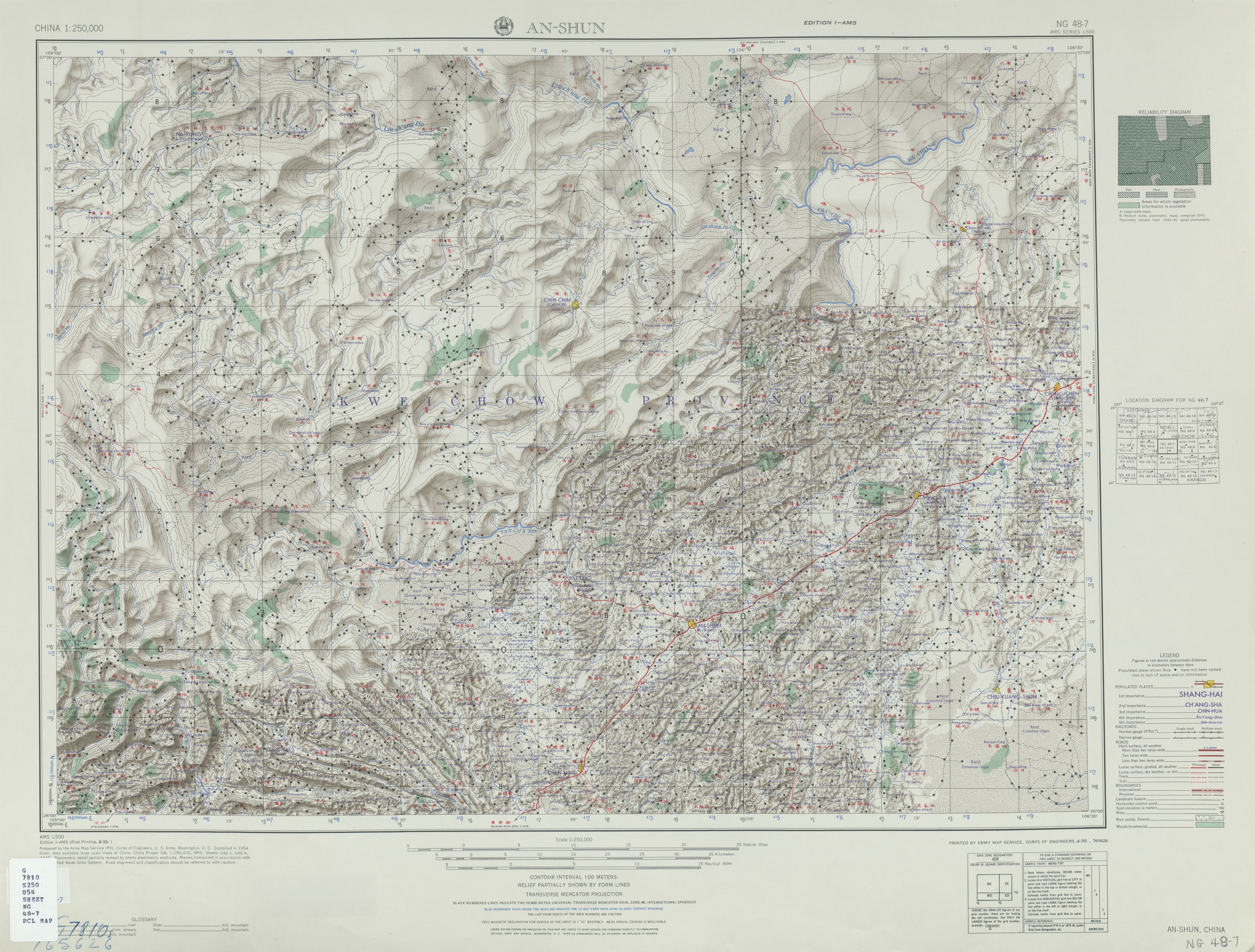 안순(安順)을 포함한 지도 (AN-SHUN (Walled)로 표시됨) (AMS, 1954)