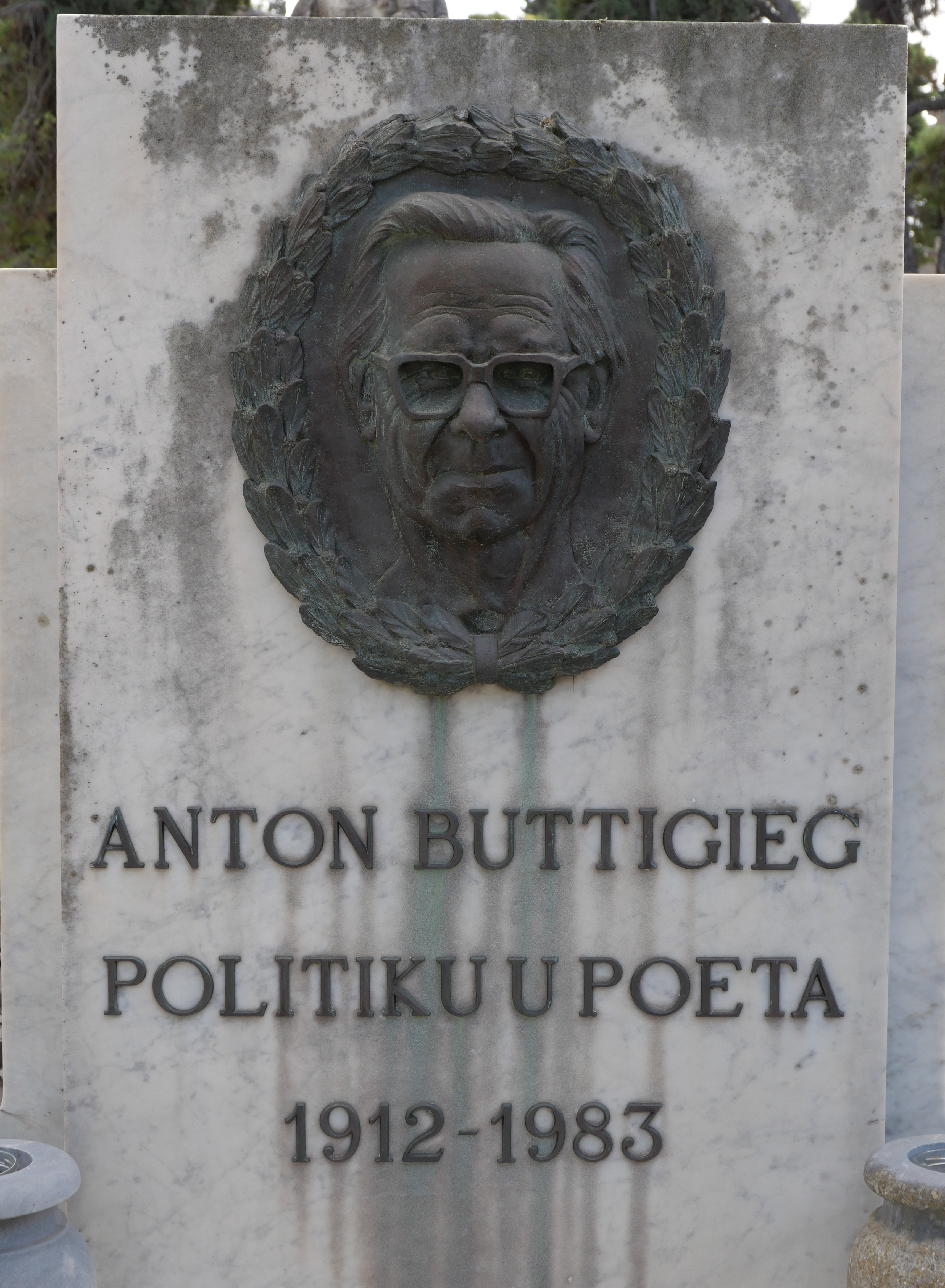 ''POLITIKU U POETA'' - 부티기그의 묘비는 몰타에서 가장 큰 묘지인 파올라의 아돌로라타 묘지에 있다.