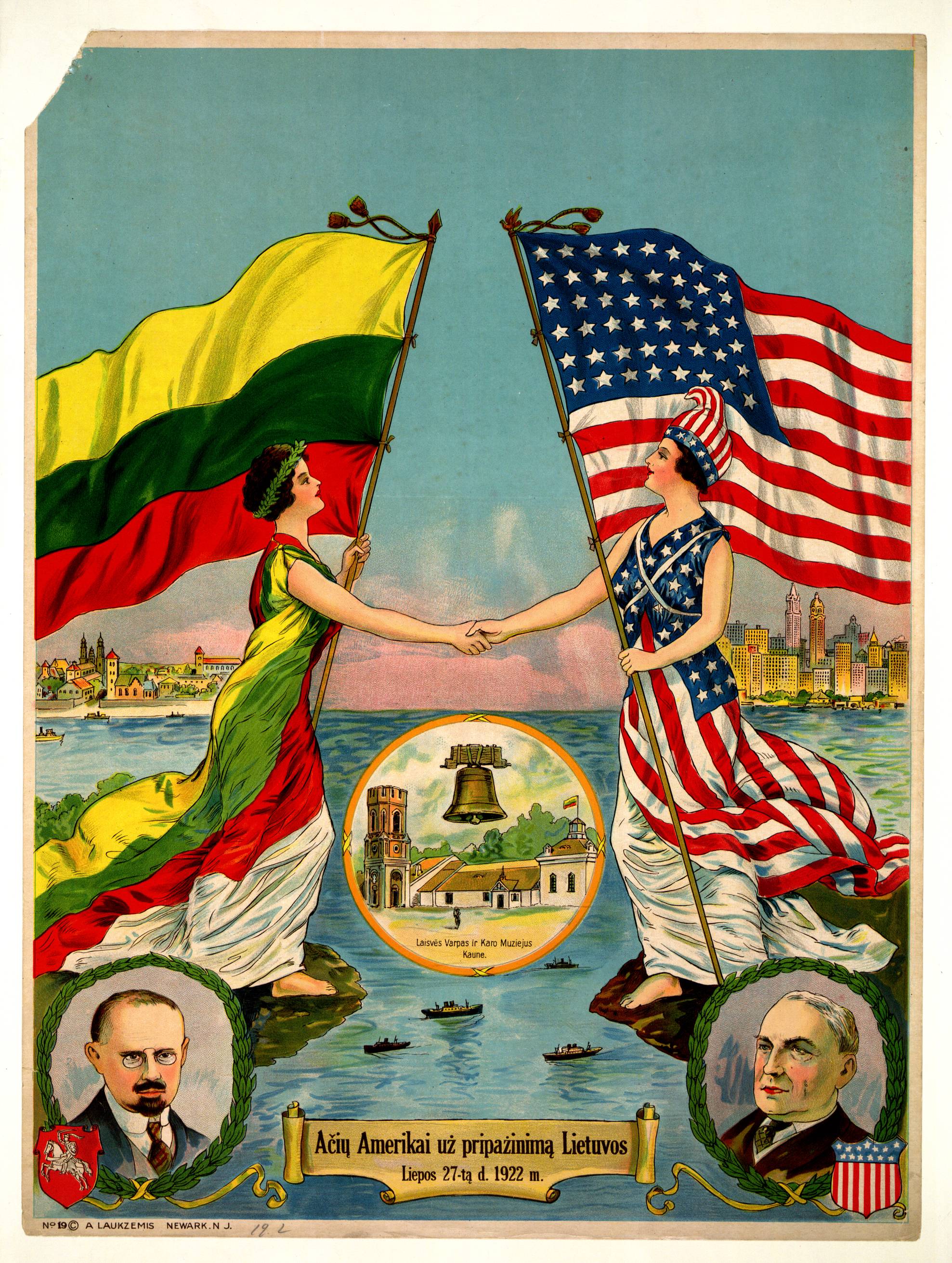 1922년 포스터에 묘사된 스툴긴스키스(왼쪽)와 미국의 대통령 워런 하딩.