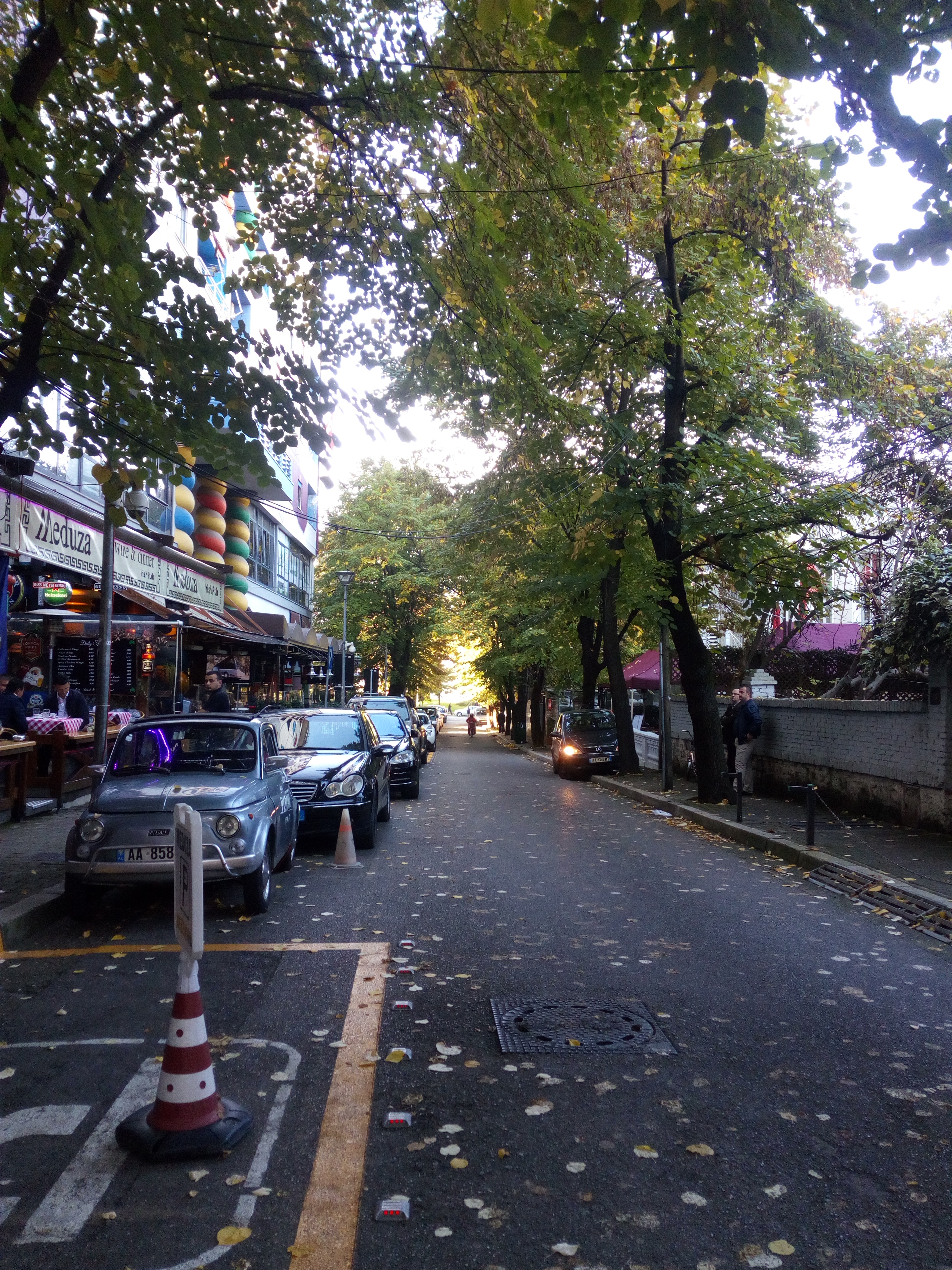 티라나 중심부 블로쿠 지구 근처 무스타파 마토히티 거리의 카페들
