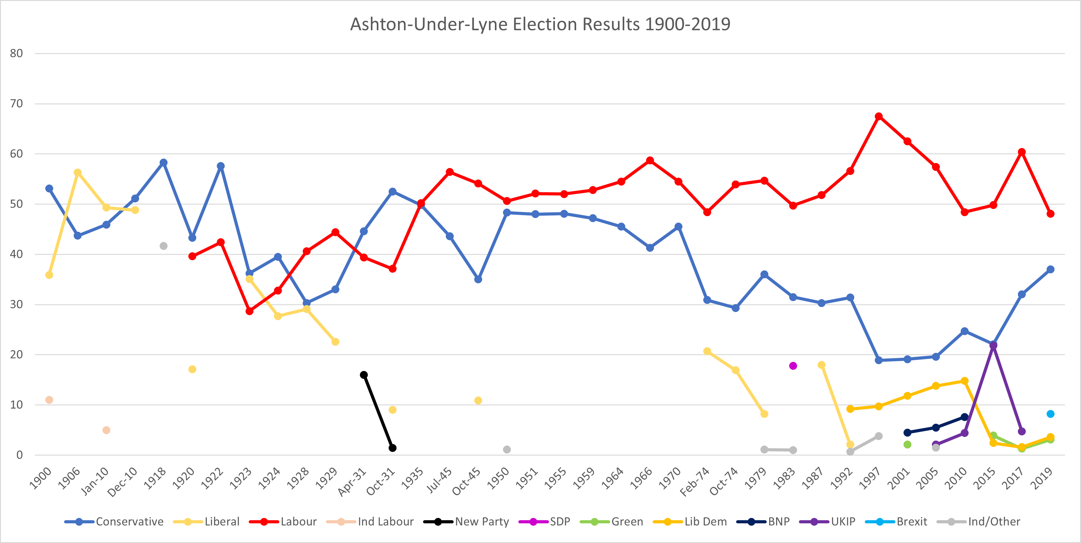 애시턴언더라인 선거구에서는 1950년대부터 노동당 후보가 지속적으로 당선되었다.