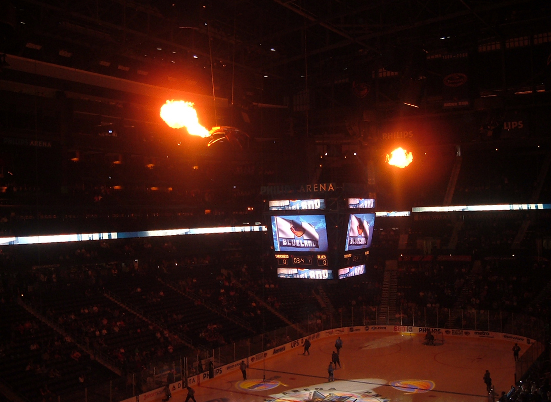 필립스 아레나(Philips Arena)의 거대한 불을 뿜는 새 머리 조형물. 경기에 앞서 선수들을 소개할 때와 스래셔스가 골을 넣었을 때 불이 켜졌다.