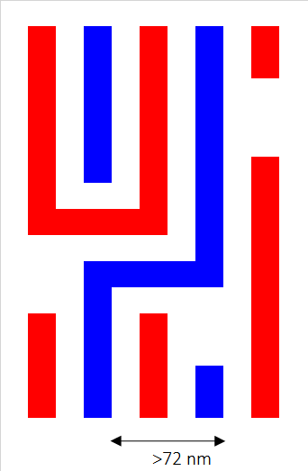 193nm 파장에서 작동하는 1.35 NA 액침 도구의 해상도 한계는 36nm이다.[17] 이 한계를 넘어 20nm 이하 노드로 진입하려면 멀티플 패터닝이 필요하다.[17] 20nm 파운드리 및 메모리 노드 이후부터는, 가장 밀도가 높은 레이어를 위해 액침 리소그래피를 사용하여 더블 패터닝과 트리플 패터닝이 이미 사용되고 있다.