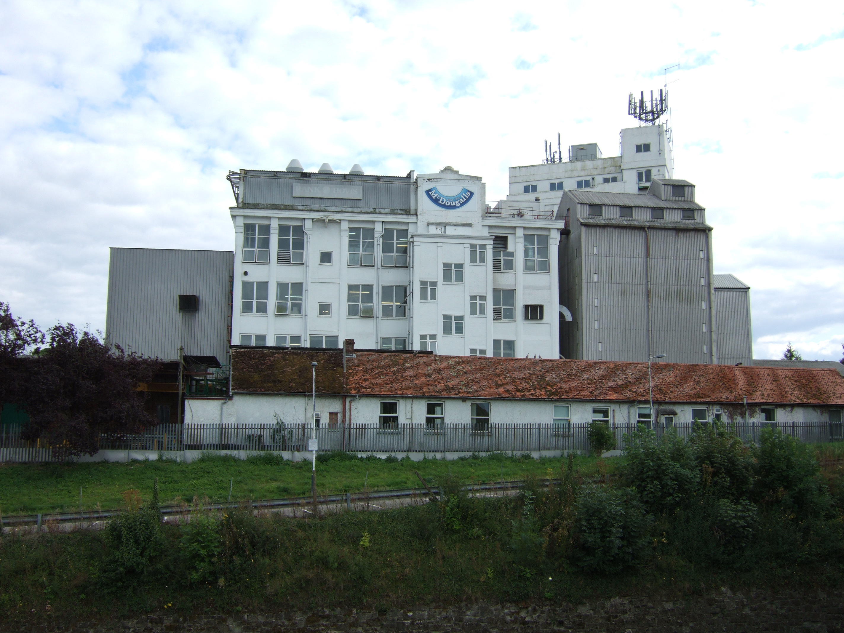 대형 밀가루 제분소인 맥더걸스가 기차역 근처에 있다.