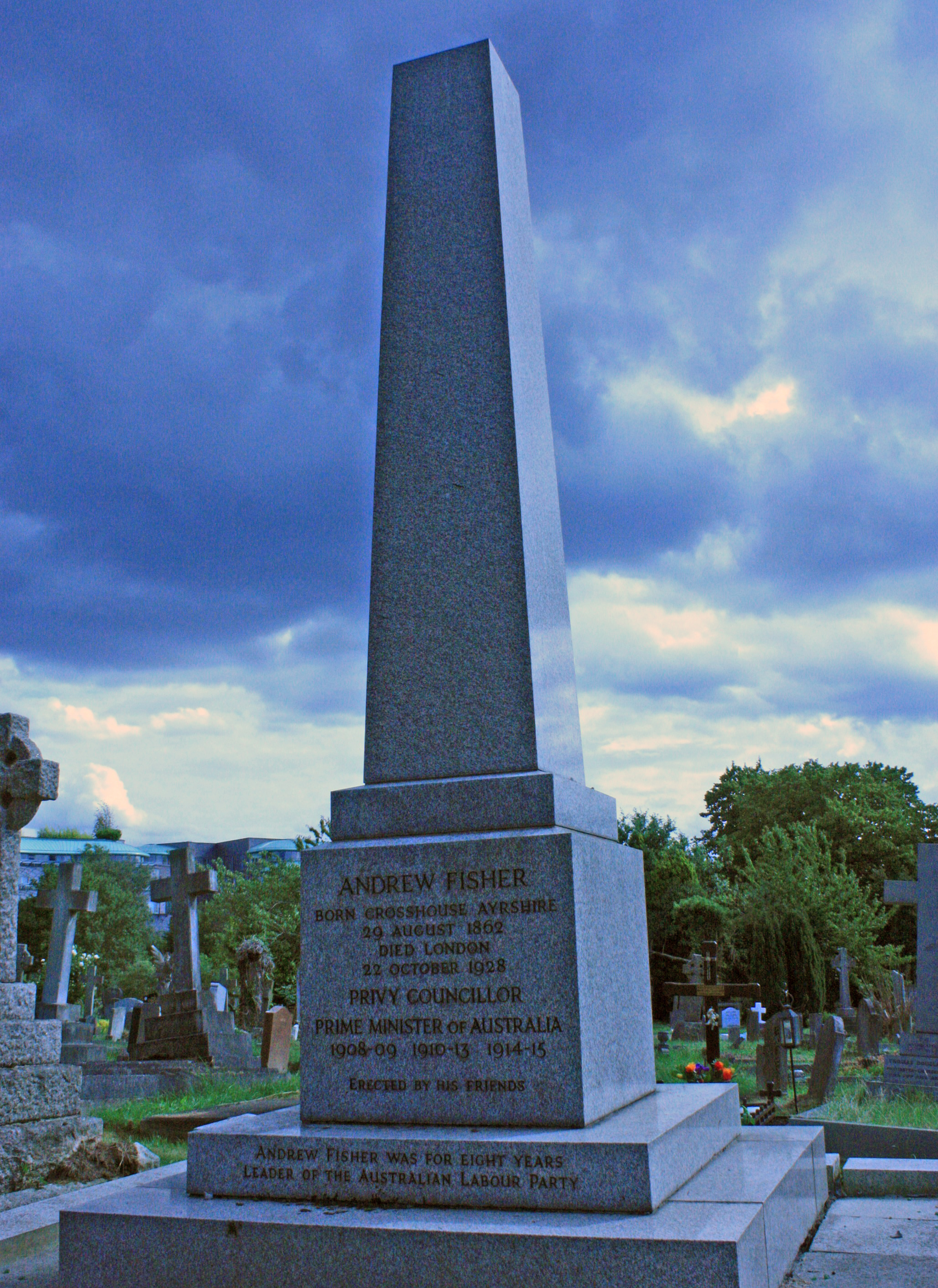 앤드루 피셔는 스코틀랜드 출신의 오스트레일리아 정치인으로, 1908년부터 1909년, 1910년부터 1913년, 1914년부터 1915년까지 세 차례 오스트레일리아 총리를 역임했다. 1885년 오스트레일리아로 이주하기 전, 스코틀랜드에서 탄광 노동자로 일했으며, 퀸즐랜드 노동 운동에 참여했다. 1901년 연방 의회에 진출하여 노동당 대표를 맡았으며, 총리 재임 기간 동안 다양한 개혁을 추진했다. 1916년부터 1921년까지 주영 호주 고등판무관을 지냈으며, 은퇴 후 영국에서 사망했다. 그는 오스트레일리아 노동당의 중요한 인물로 평가받으며, 그의 이름을 딴 선거구와 지명이 존재한다.
