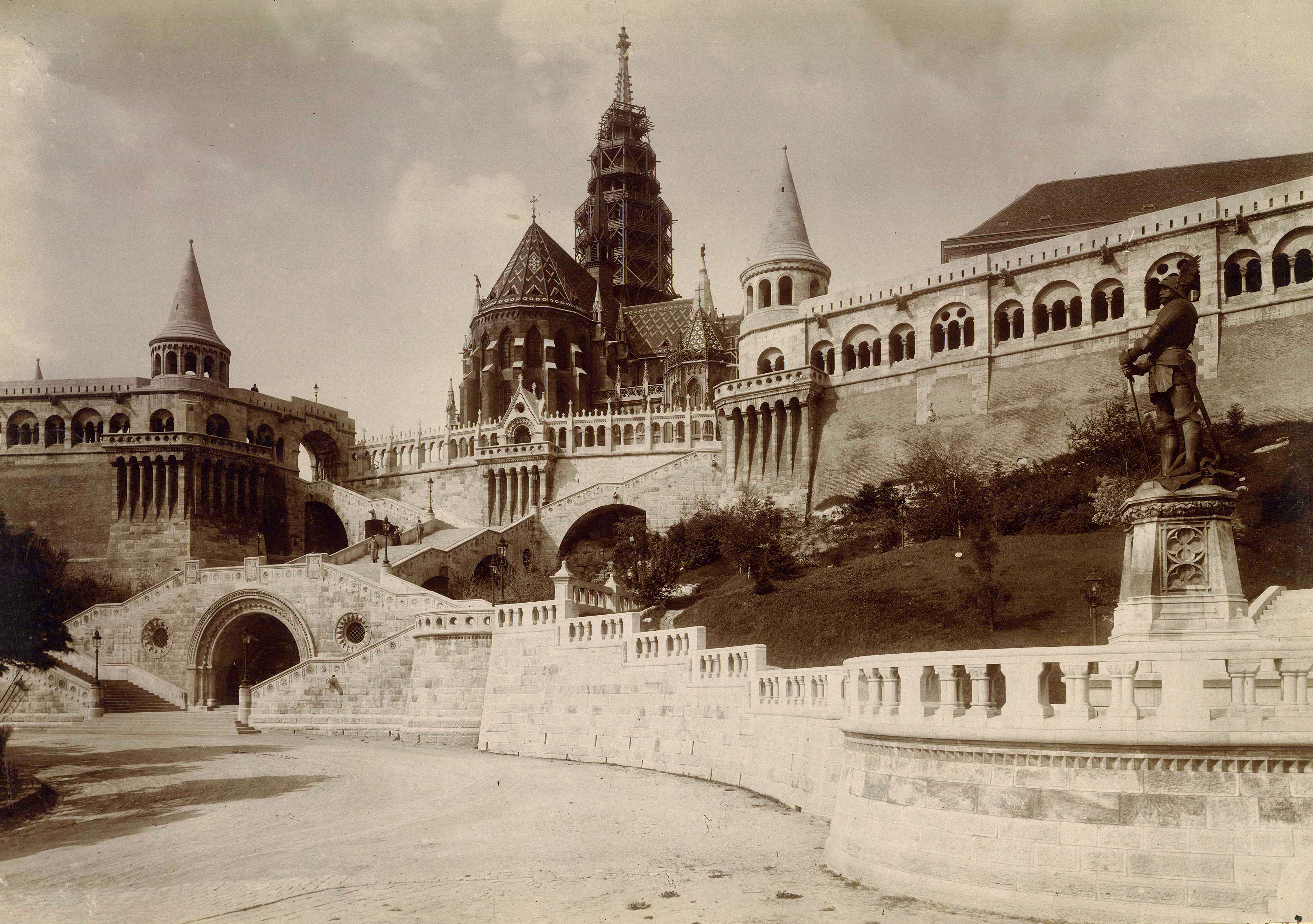1906년에 세워진 헝가리의 이슈트반 1세의 청동 기마상은 요새와 마차시 교회 사이에 위치해 있다. 이 청동상의 받침대는 프리제스 슐렉이 설계하고 알라요스 스트로블이 제작한 네오 로마네스크 양식으로, 왕의 생애를 묘사하는 에피소드가 새겨져 있다.
