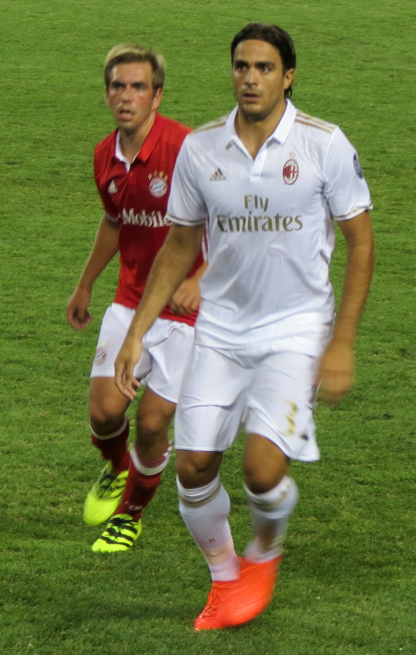 알레산드로 마트리가 2016년 AC 밀란의 흰색 어웨이 유니폼을 입고 FC 바이에른 뮌헨을 상대로 경기하는 모습