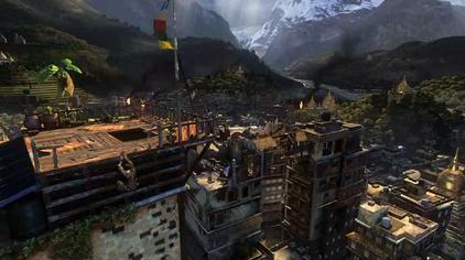 네팔에 도착한 네이트는 조란 라자레비치 군대의 습격으로 폐허가 된 도시에서 클로이 프레이저와 합류한다. 샹그릴라로 가는 길을 숨긴 사원을 찾기 위해 도시에서 가장 높은 호텔 꼭대기에서 도시를 내려다보던 중, 황금도에 새겨진 문장과 같은 문장이 있는 사원을 발견한다. 두 사람은 그곳으로 향하던 중, 취재를 온 엘레나 피셔와 카메라맨 제프를 만나고, 네이트는 엘레나를 위험에 빠뜨릴 수 없어 엘레나 일행도 함께 데려간다.사원에 도착한 네이트는 엘레나 일행을 입구에 두고 클로이와 함께 사원을 탐험한다. 황금도를 사용하여 장치를 풀자 비밀 지하 방이 나타나고, 안쪽의 장치를 풀고 받침대에 황금도를 꽂자 거대한 입체 지도가 나타나 샹그릴라의 위치를 알려준다. 그러나 곧 라자레비치의 병사들이 들이닥치고, 네이트 일행은 병사들을 뚫고 사원을 탈출하지만, 제프가 총에 맞아 부상을 입는다. 클로이는 제프를 버리자고 주장하지만, 네이트는 제프를 도우려 한다. 결국 라자레비치와 해리 플린에게 쫓기게 되고, 라자레비치는 제프를 사살하고 네이트에게서 지도와 황금도를 빼앗는다. 라자레비치는 해리에게 네이트와 엘레나를 처치하라고 명령하지만, 네이트 일행은 틈을 봐서 탈출한다.