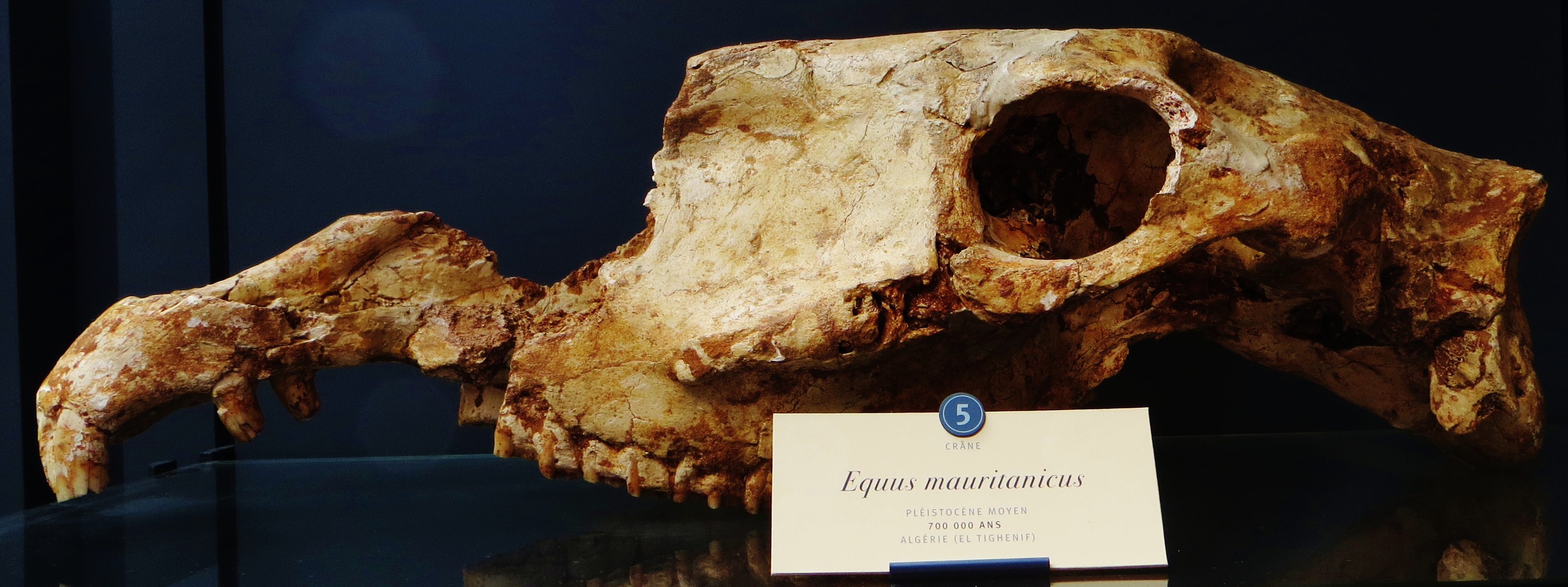 ''Equus''는 북아메리카에서 기원했으며, 캐나다에서 발견된 70만 년 전 중기 플라이스토세 말 중족골 뼈의 고유전체 염기서열 분석 결과, 말과의 최근 공통 조상 시기가 400만~450만 년 전 사이로 추정된다.[17] 말은 이 시기에 당나귀와 얼룩말에서 분화되었고, 약 210만~340만 년 전에 유라시아와 아프리카로 이동했다. 얼룩말과 당나귀는 약 200만 년 전에 분기되었으며, 산얼룩말은 약 160만 년 전, 평원얼룩말과 그레비얼룩말은 140만 년 전에 분기되었다.[18]
