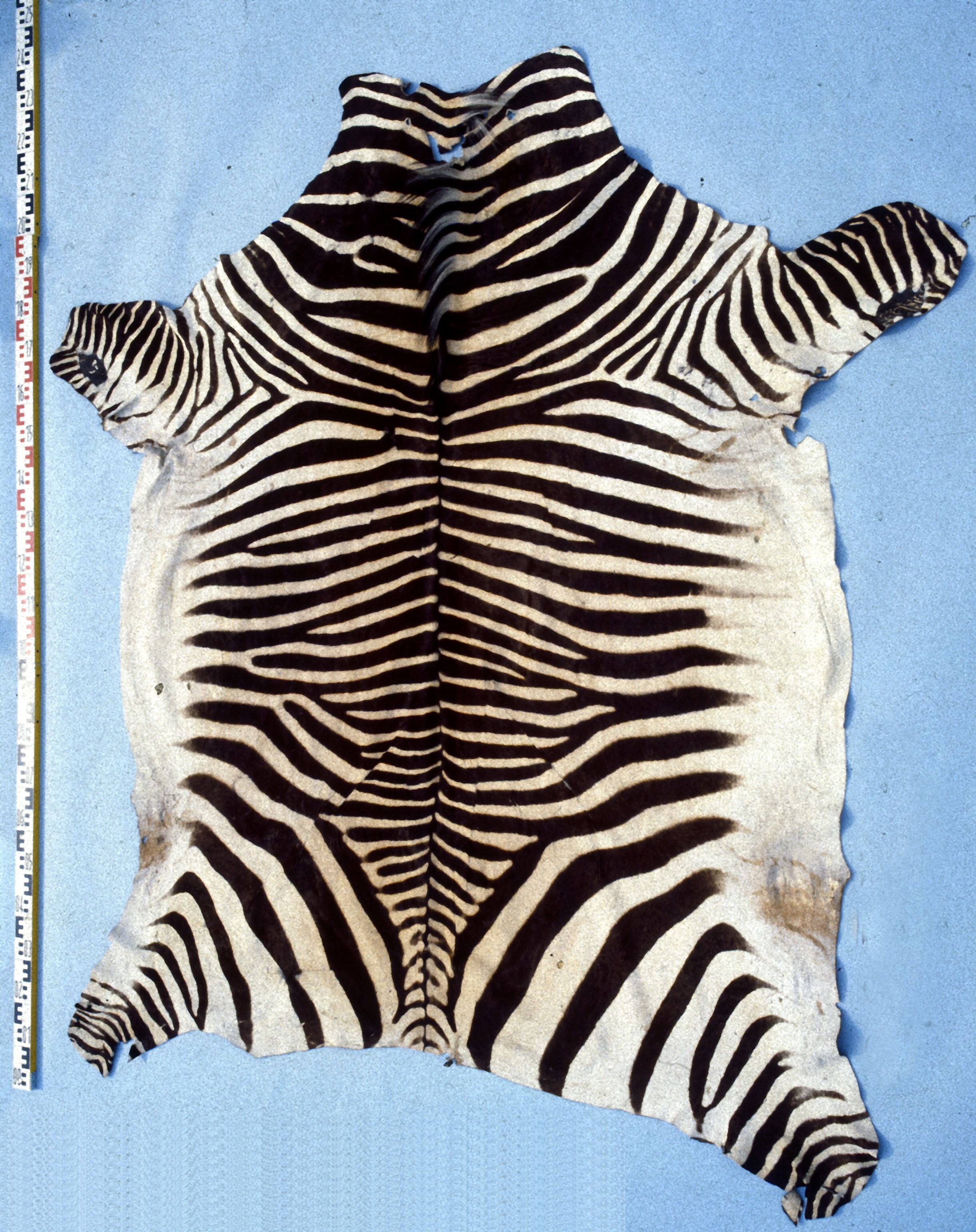 20세기 초, 얼룩말 가죽은 카펫과 의자를 만드는 데 사용되었다. 21세기에는 얼룩말 가죽 카펫이 1000USD에서 2000USD에 판매되면서 사냥꾼의 표적이 되기도 한다. 아프리카인들 사이에서는 사냥이 드물었지만, 산족은 얼룩말을 고기 사냥하는 것으로 알려져 있었다.