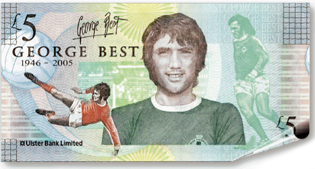 2006년 11월, 얼스터 은행은 최초의 기념 지폐를 발행했는데, 이는 전 북아일랜드 및 맨체스터 유나이티드 축구 선수 조지 베스트의 사망 1주년을 기념하여 100만 장의 5파운드 지폐를 발행한 것이다. 이 지폐는 RBS "데이지 휠"을 통합한 최초의 얼스터 은행 지폐였으며, 은행 지점에서 사용할 수 있게 된 지 몇 시간 만에 전체 발행분이 수집가들에게 모두 판매되었다.[1]
