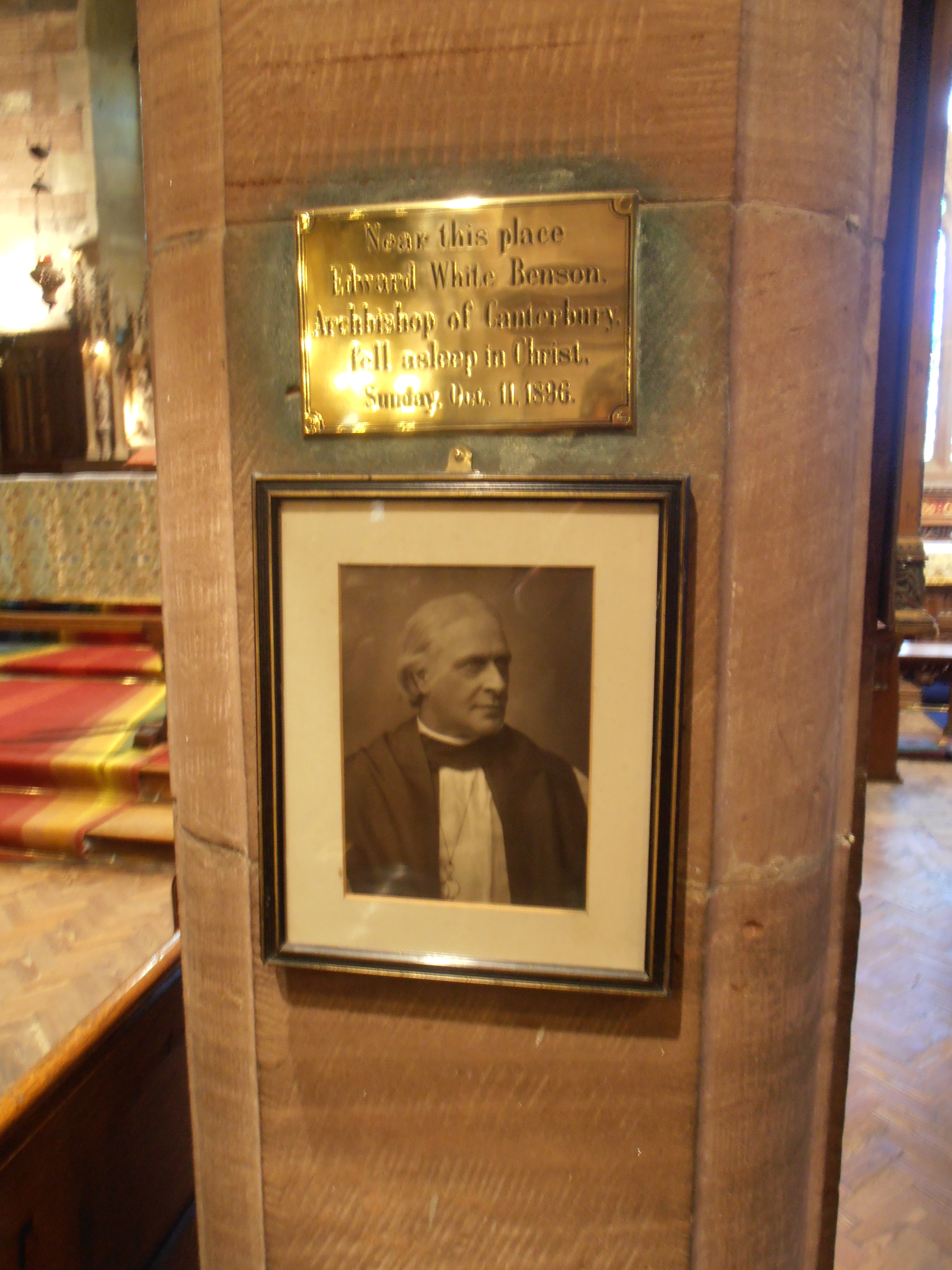 그는 캔터베리 대성당 본당 서쪽 끝에 있는 웅장한 무덤에 묻혔다. 무덤에는 벤슨이 선택한 묘비명이 새겨져 있다. ''Miserere mei Deus Per crucem et passionem tuam libera me Christe'' ("나의 하나님, 그리스도여, 십자가와 수난을 통해 나를 구원하소서").[14][15]
