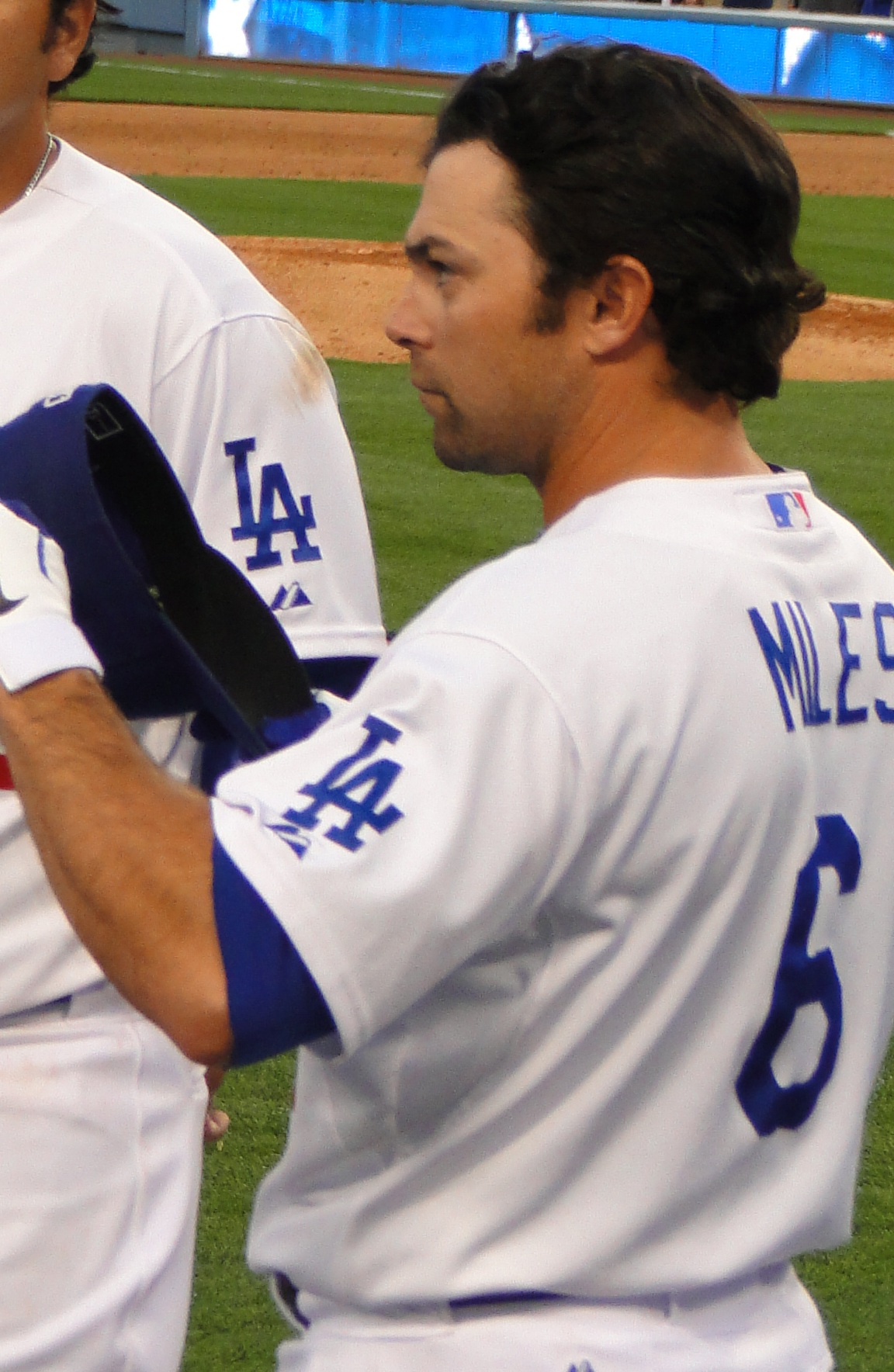 2009년 12월 3일, 마일스는 제이크 폭스와 함께 제프 그레이와 두 명의 마이너 리그 유망주를 대가로 오클랜드 애슬레틱스로 트레이드되었다.[13] 그러나 2010년 2월 1일, 추후 지명 선수와 함께 윌리 타베라스, 애덤 로살레스를 상대로 신시내티 레즈로 다시 트레이드되었다.[13] 스프링 트레이닝이 끝나고 지명 할당된 후 4월 14일에 방출되었다.[13]2. 8. 로스앤젤레스 다저스 (2011-2012)