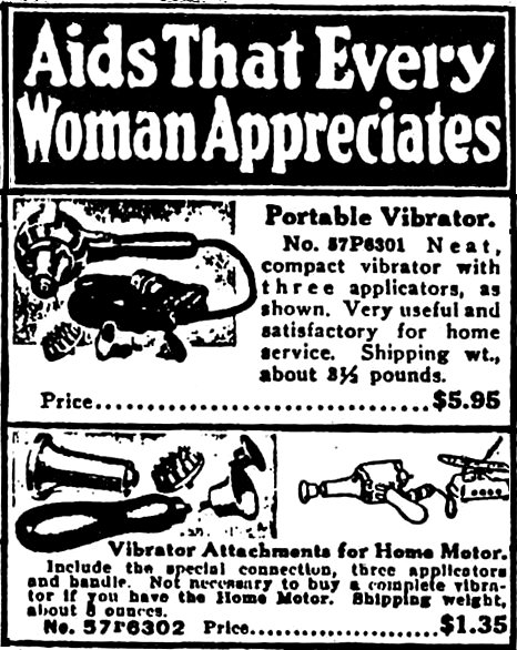 마사지 기기의 발명은 치료 시간을 몇 시간에서 몇 분으로 단축시켜 산파의 필요성을 없애고 의사의 치료 능력을 향상시키는 데 기여했다. 19세기 중반, 유럽과 미국의 많은 유명 목욕 휴양지에서 수치료 기기가 인기를 끌었다. 1870년대에는 의사들을 위해 시계 태엽으로 작동하는 진동기가 출시되었다. 1873년에는 프랑스의 정신병원에서 히스테리 치료를 위해 최초의 전기 기계식 진동기가 사용되었다. 당시 의사들은 이 질환이 성적 불만족에서 비롯된다는 것을 인정했지만, 이를 치료하는 데 사용되는 기기의 성적인 목적에 대해서는 알지 못했거나 인정하려 하지 않는 듯했다. 실제로, 질경의 도입이 진동기의 도입보다 훨씬 더 논란이 많았다.20세기 초, 가정용 전기의 보급으로 진동기가 소비자 시장에 진출했다. 저렴한 치료를 집에서 개인적으로 받을 수 있다는 점이 매력적이어서 진동기는 초기 가정용품으로 인기를 얻었다. 실제로, 가정용 전기 진동기는 다른 많은 가정용품 "필수품"보다 먼저 시장에 출시되었다. 전기 청소기보다 9년 먼저, 전기 다리미보다 10년 먼저 출시되었다. 1918년의 시어스 카탈로그 가정용 전기 제품 페이지에는 "가정에서 사용하기에 매우 유용하고 만족스러운" 부착물이 있는 휴대용 진동기가 포함되어 있다.[3]