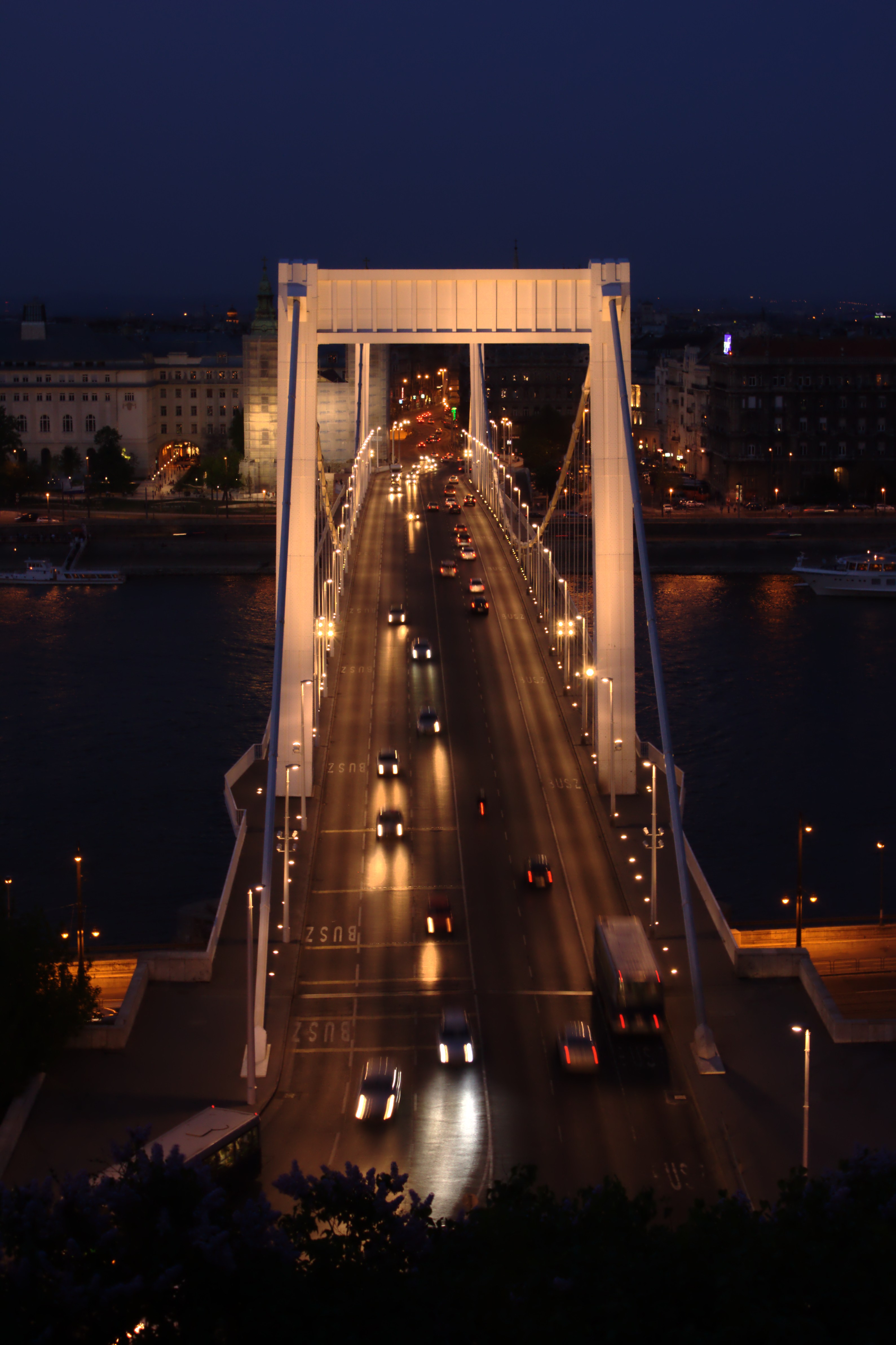 에르제베트 다리는 헝가리 부다페스트를 가로지르는 도나우강을 횡단하는 다리이다. 1897년에서 1903년 사이에 건설된 초기 다리는 부패 스캔들로 얼룩진 장식적인 현수교였으나, 제2차 세계 대전 중 독일군에 의해 파괴되었다. 현재의 다리는 1961년부터 1964년 사이에 건설된 케이블 다리이며, 일본의 지원을 받아 설치된 특별 조명으로 유명하다. 2009년 오스트리아-헝가리 제국과 일본 간의 외교 관계 수립 140주년, 일본과 헝가리 간의 외교 관계 재수립 50주년을 기념하여 조명이 설치되었다.